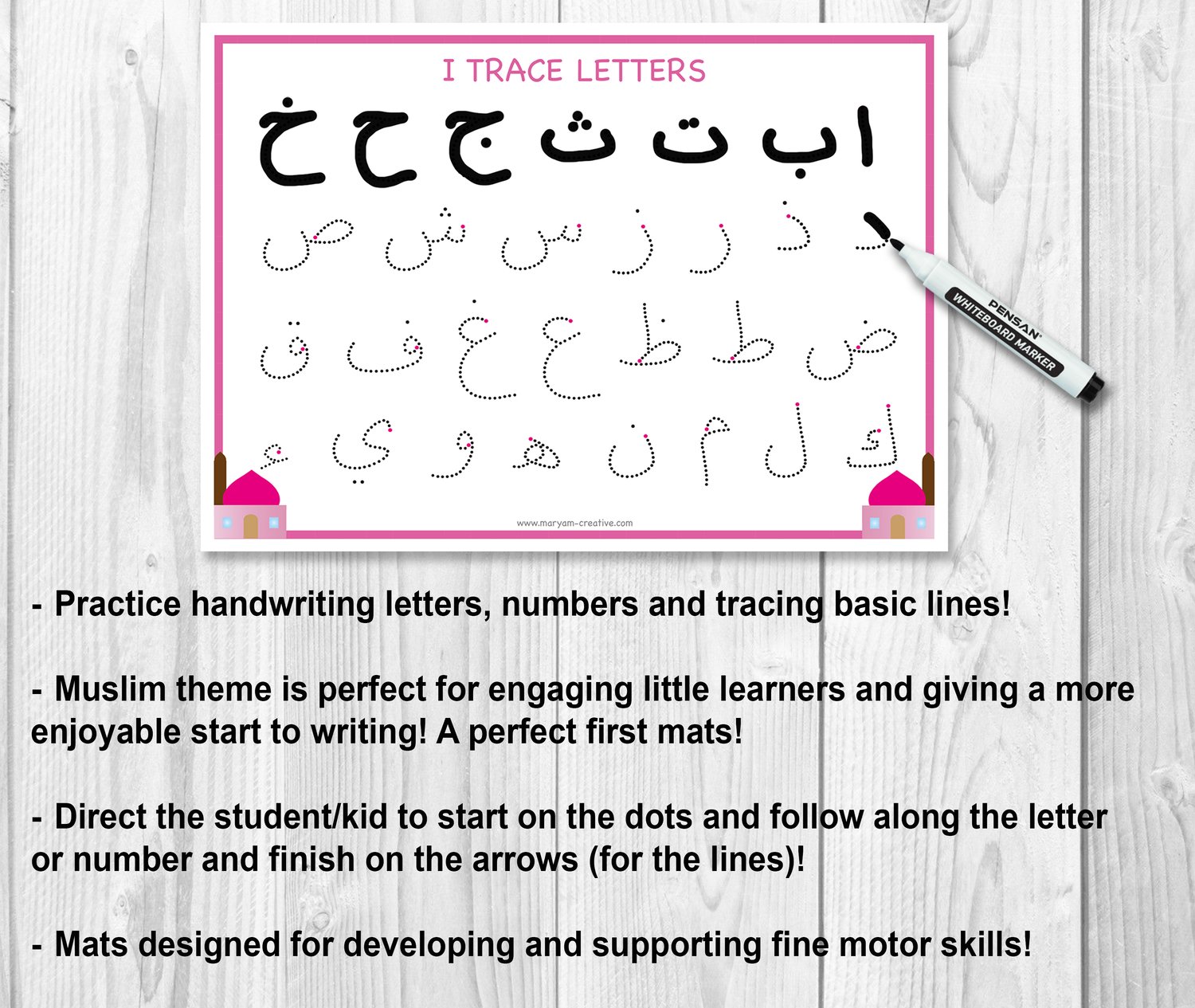 The Muslim theme is perfect for engaging little learners and giving a more enjoyable start to writing! An ideal first mat!