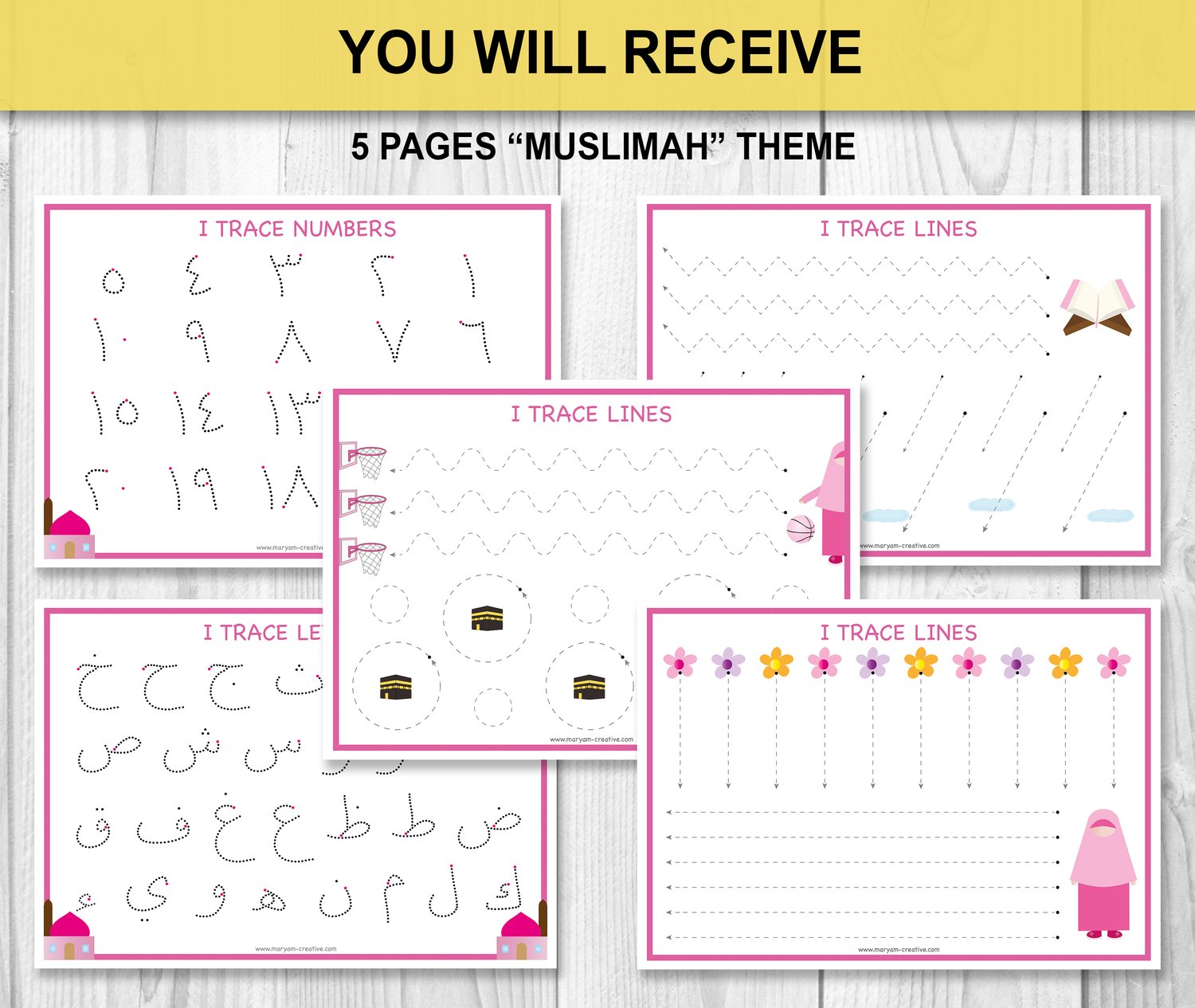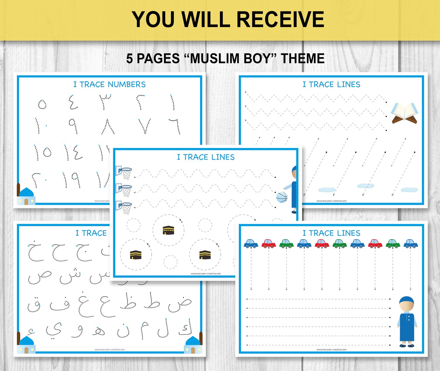 10 Arabic First Tracing mats + BONUS, Arabic Letters, Arabic Numbers - Instant Download
