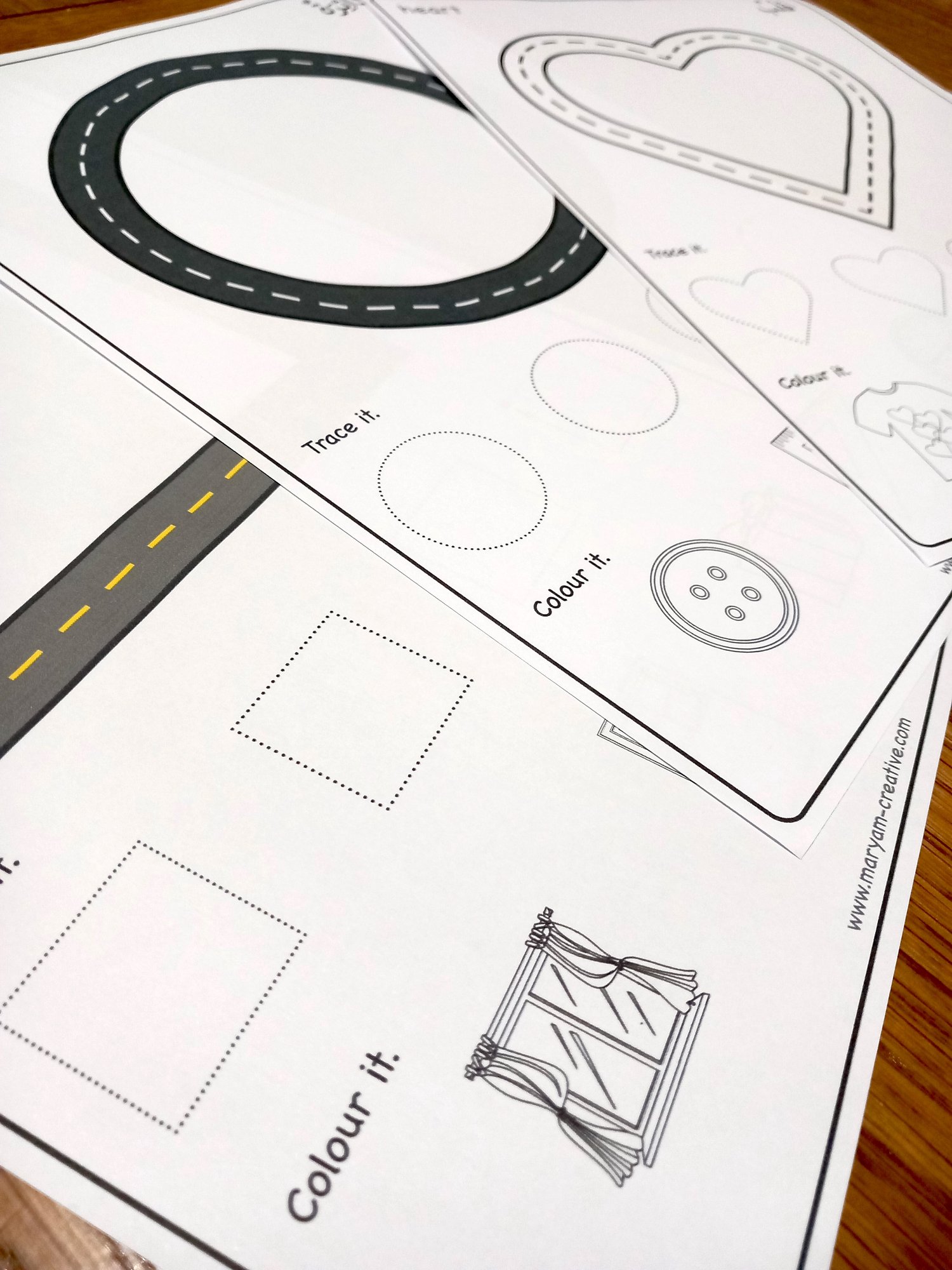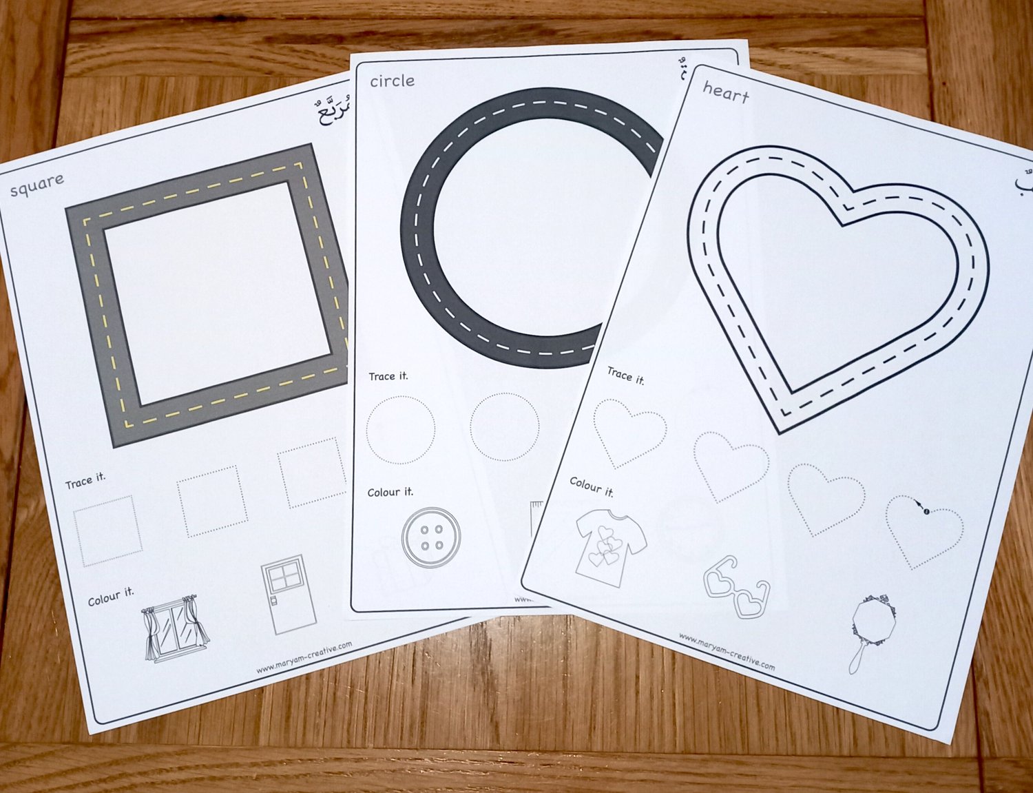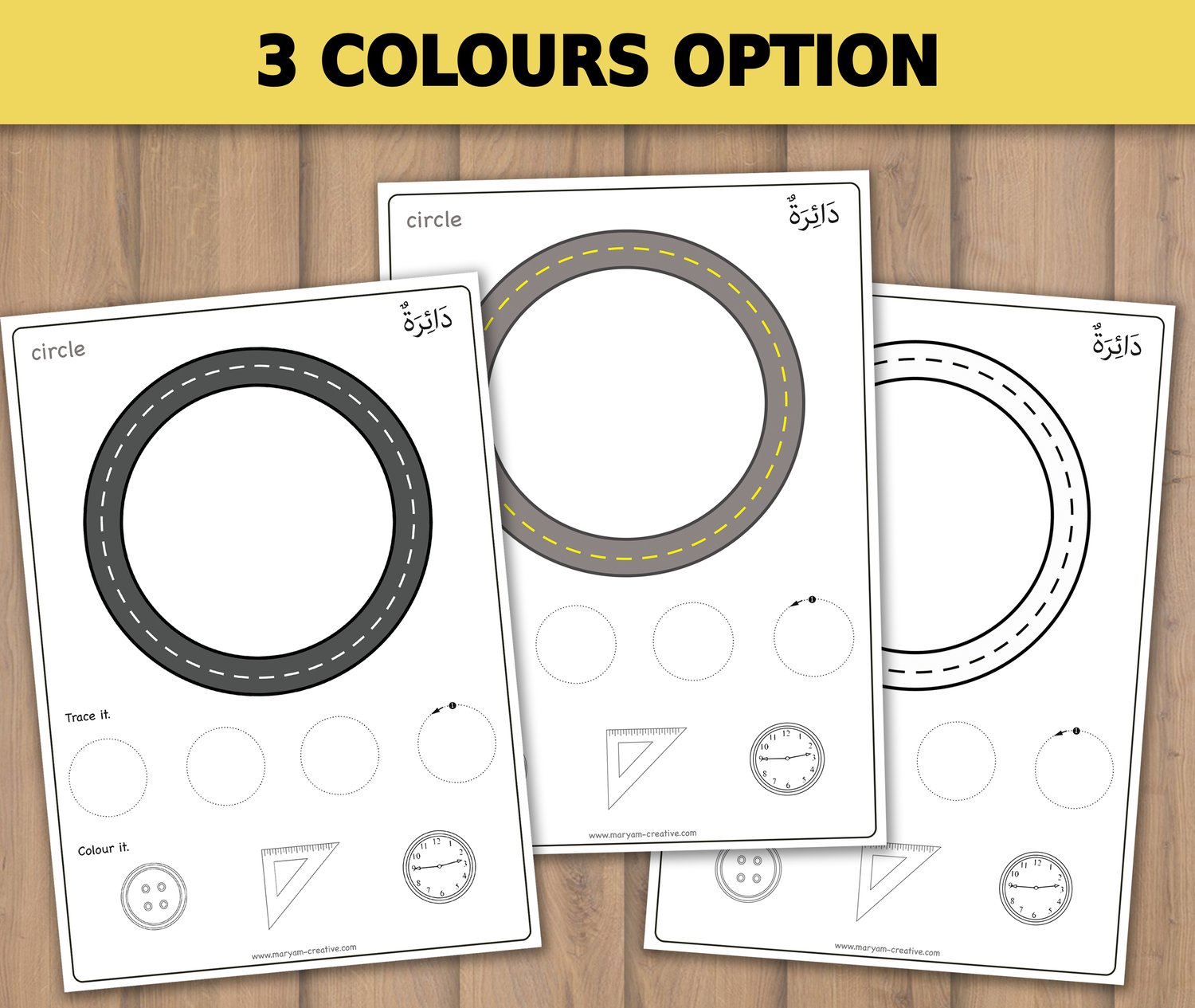 Arabic-English Shapes Worksheet Road, عربى – Instant Download