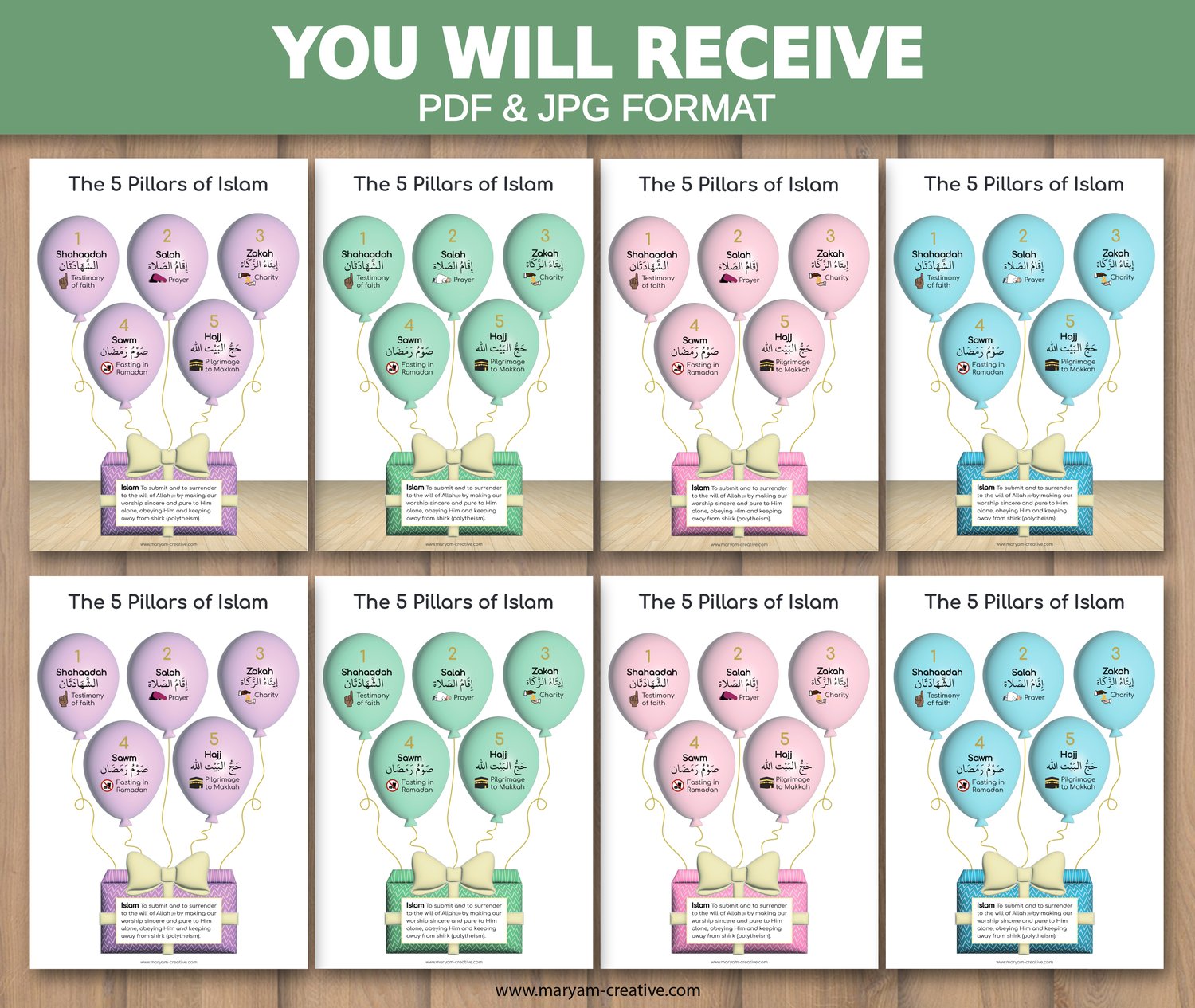 5 Pillars of Islam A4 Posters, Islam for kids - Instant Download