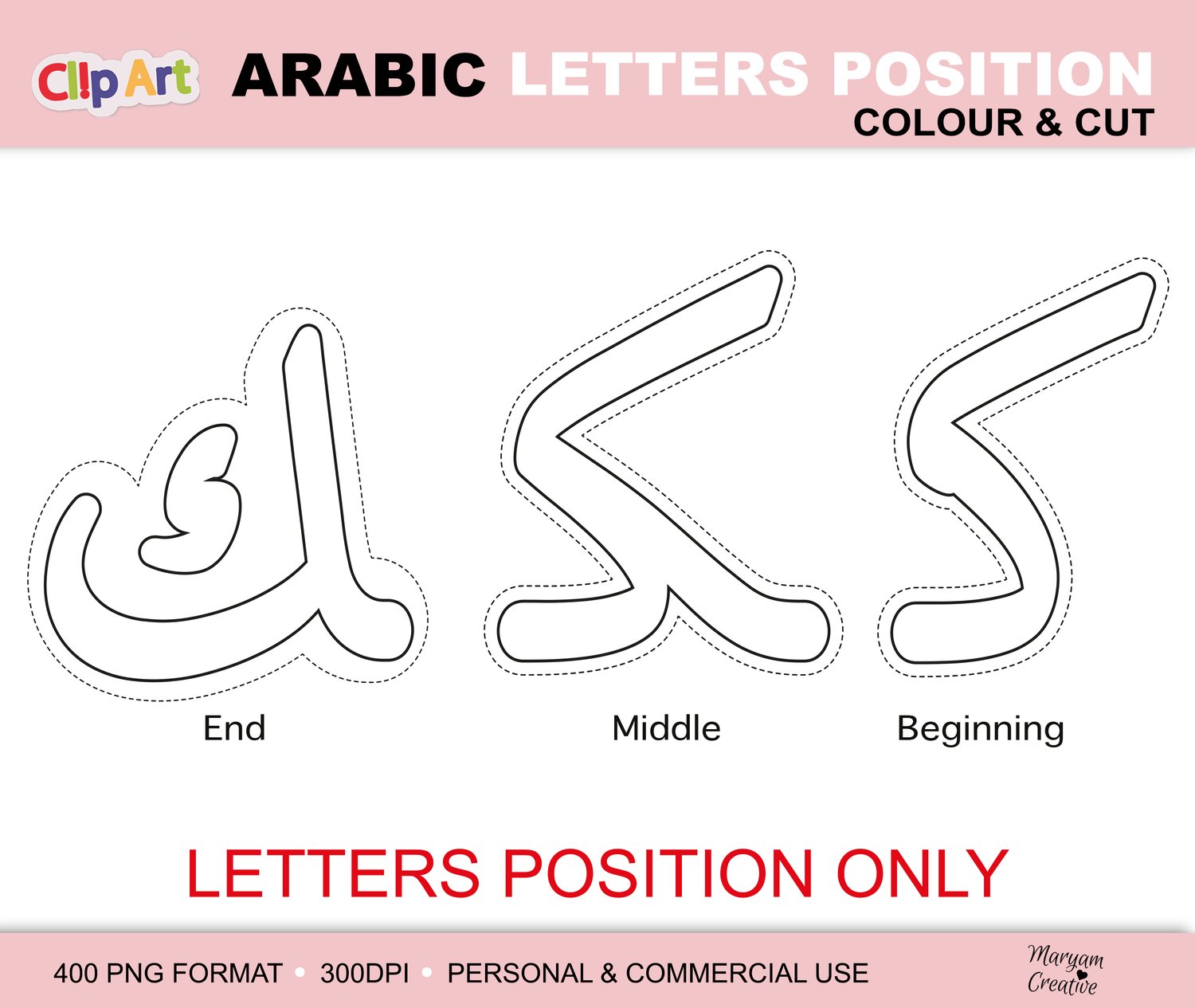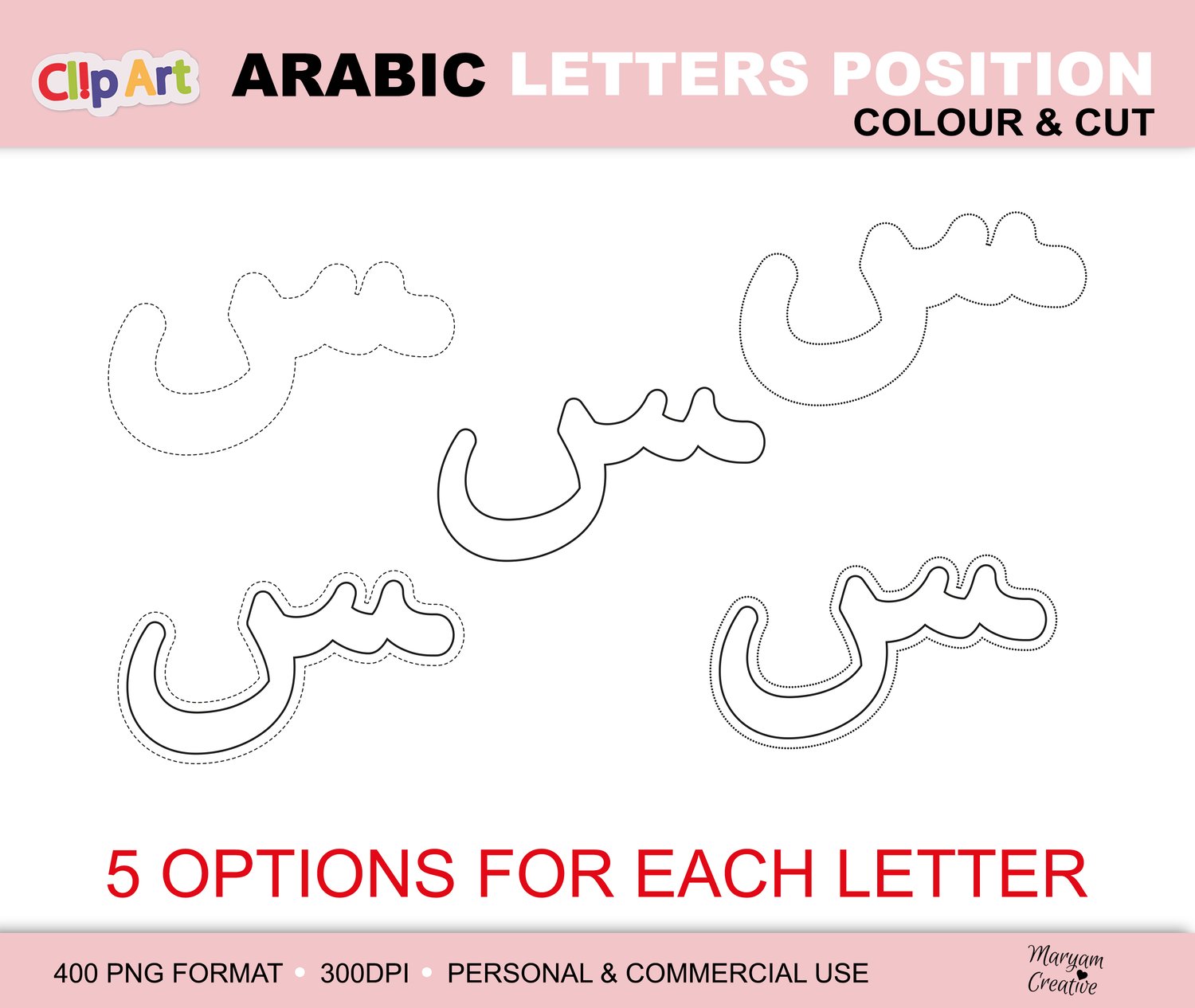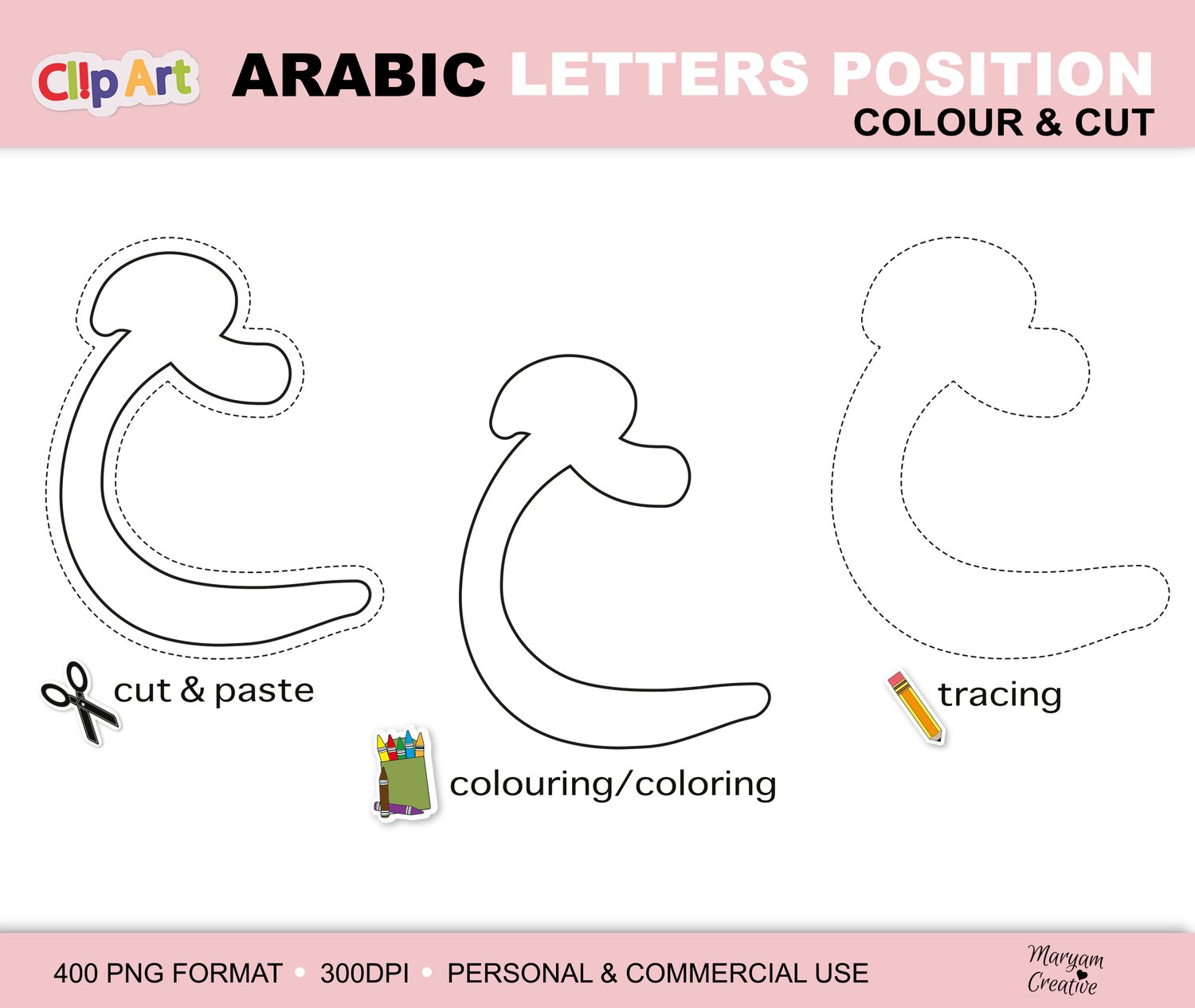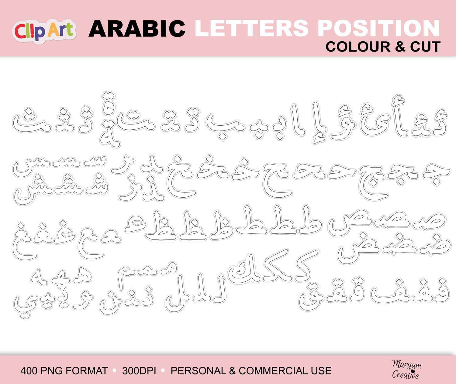 400 Arabic letters position Colour and Cut clipart, tracing, cutting, colouring, paste, PNG graphics, عربى, – Instant Download