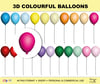 3D Inflated Balloons Clipart, 46 PNG graphics, colourful balloons - Instant Download