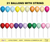 - 46 PNG files: 21 balloons with string, 21 balloons graphics without strings and 4 strings!