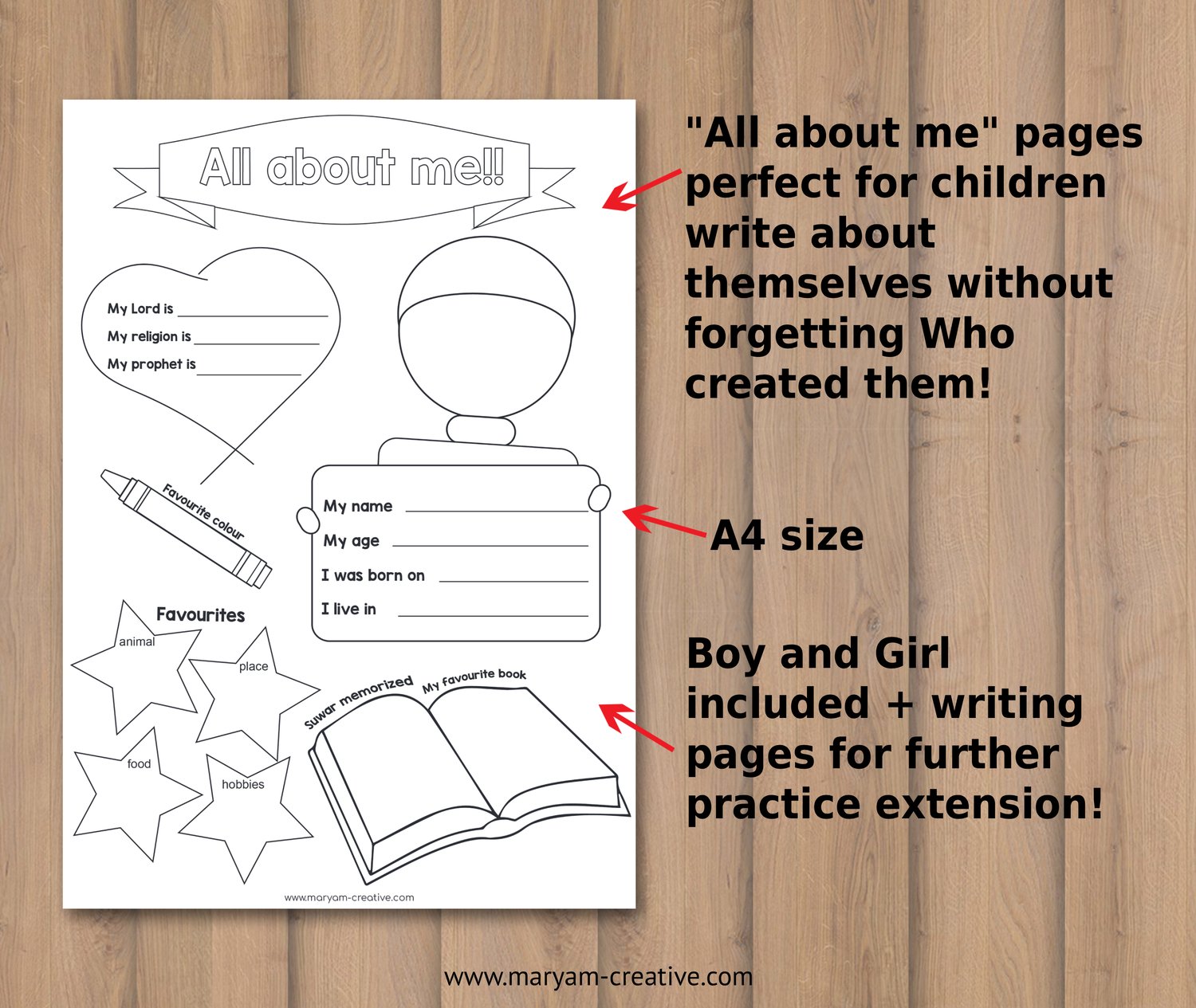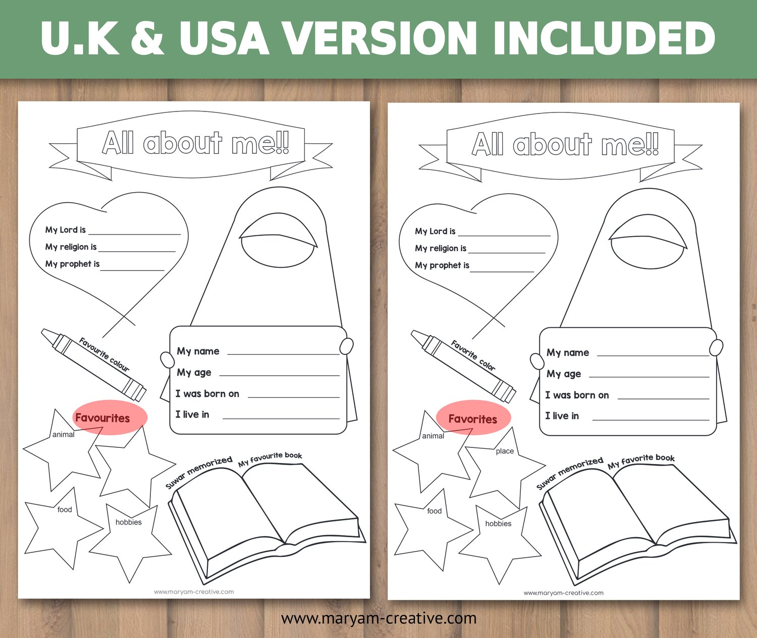 All About Me Worksheet, Muslim Kids, Back to School, Islam - Instant Download