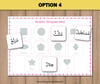 - Option 4: 11 cards with Arabic shapes word only.