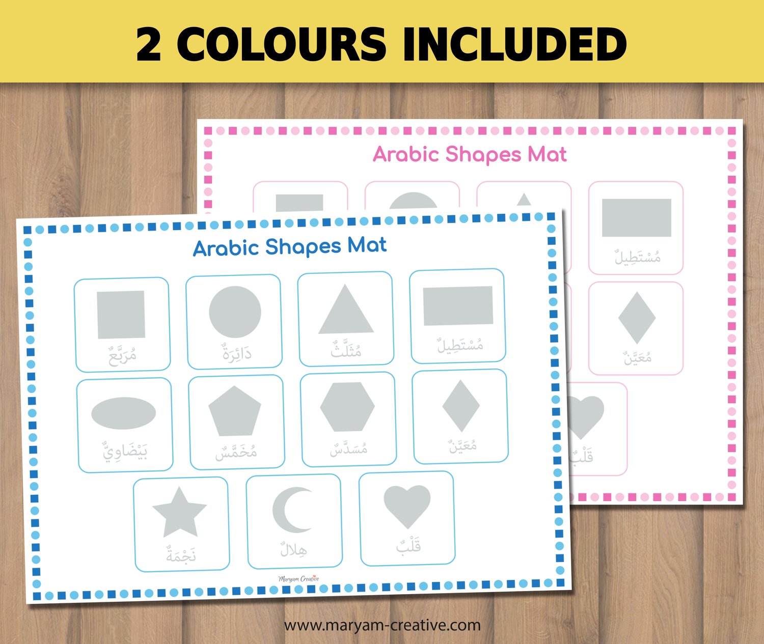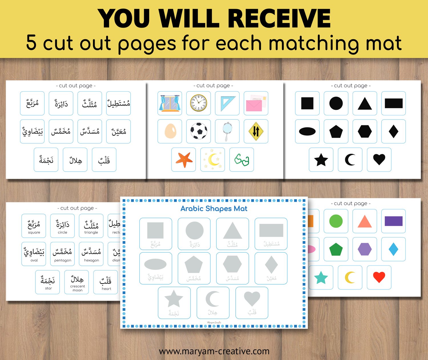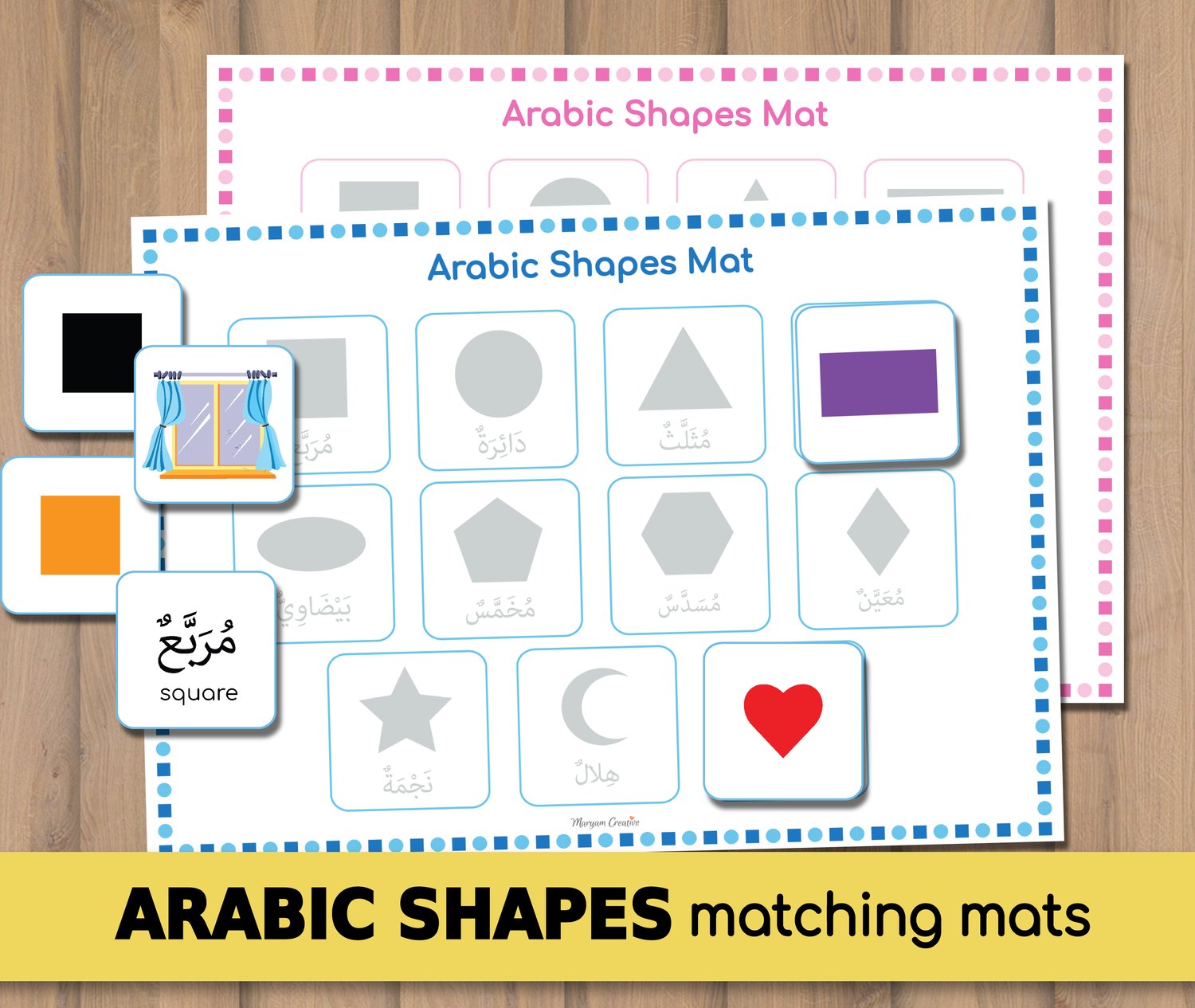 Arabic 2d Shapes matching mats, الأشكال العربية - Instant Download