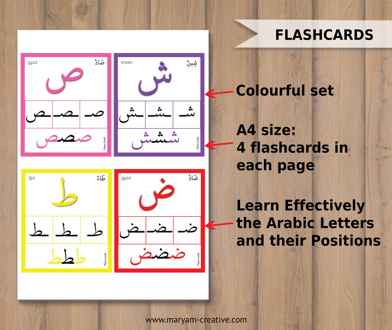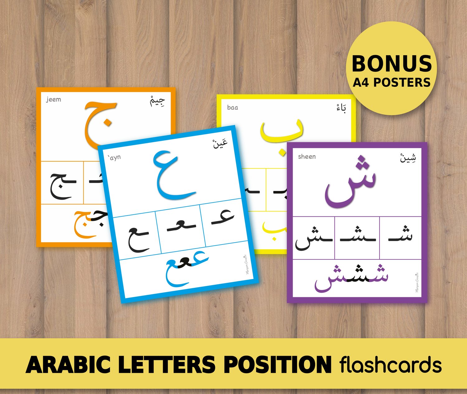 Arabic Alphabet Letters Position Flashcards & A4 Posters, موقف الحروف العربية – Instant Download