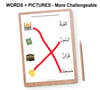 4 variations with the 28 Arabic letters from the basic worksheets ( letters and pictures) for more challenging worksheets (words and pictures)!