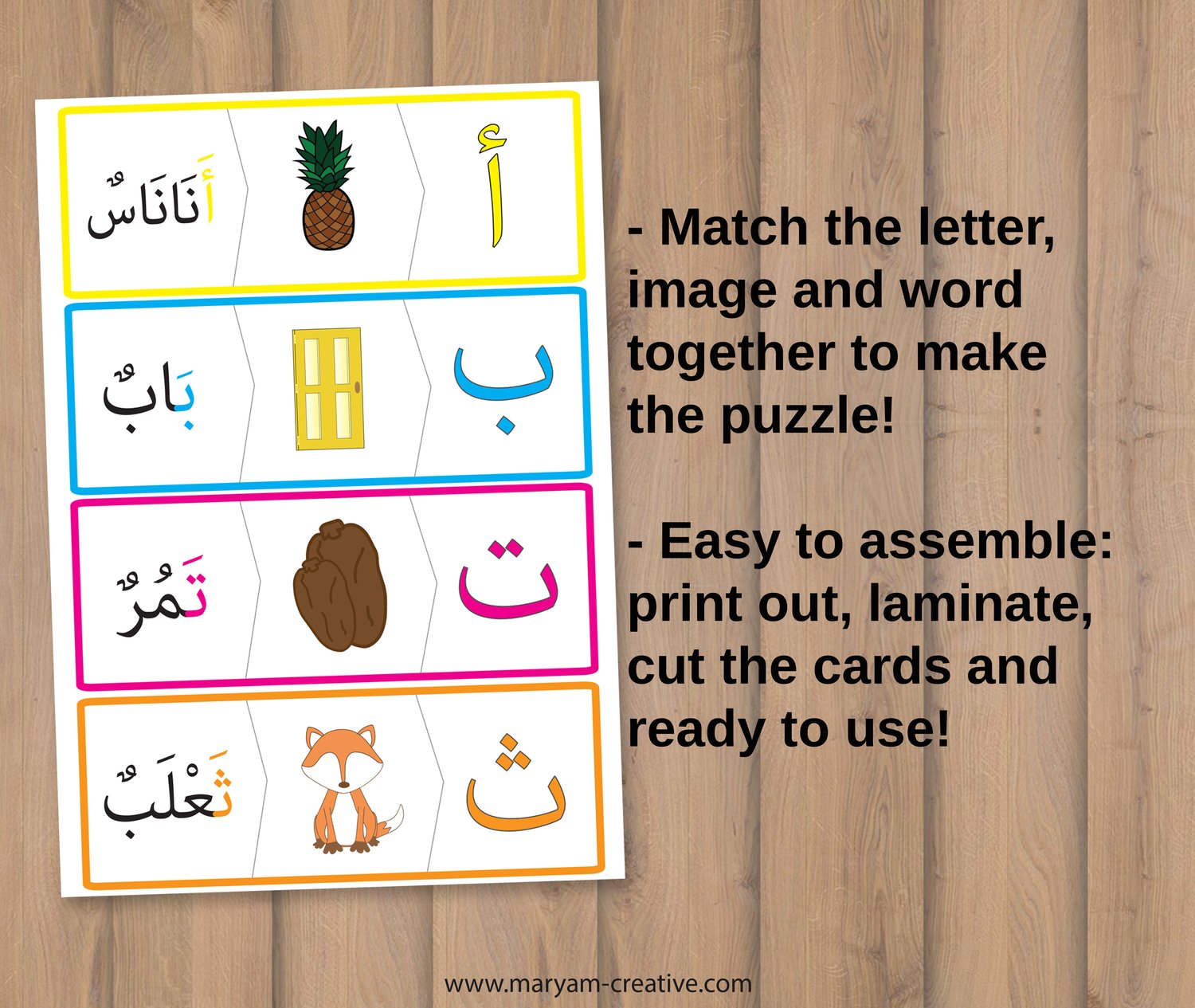 Arabic Alphabet Puzzles, الحروف العربية – Instant Download