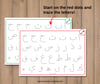 Direct the child/student to start on the red dots and trace the letters.