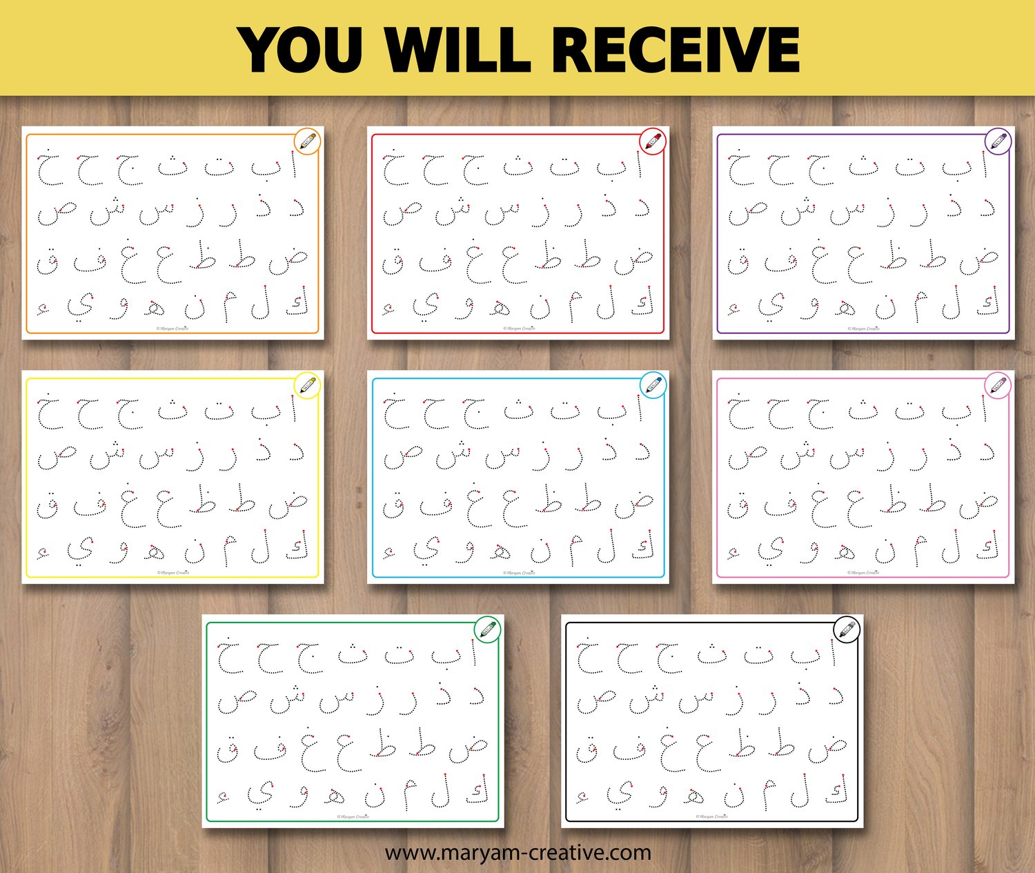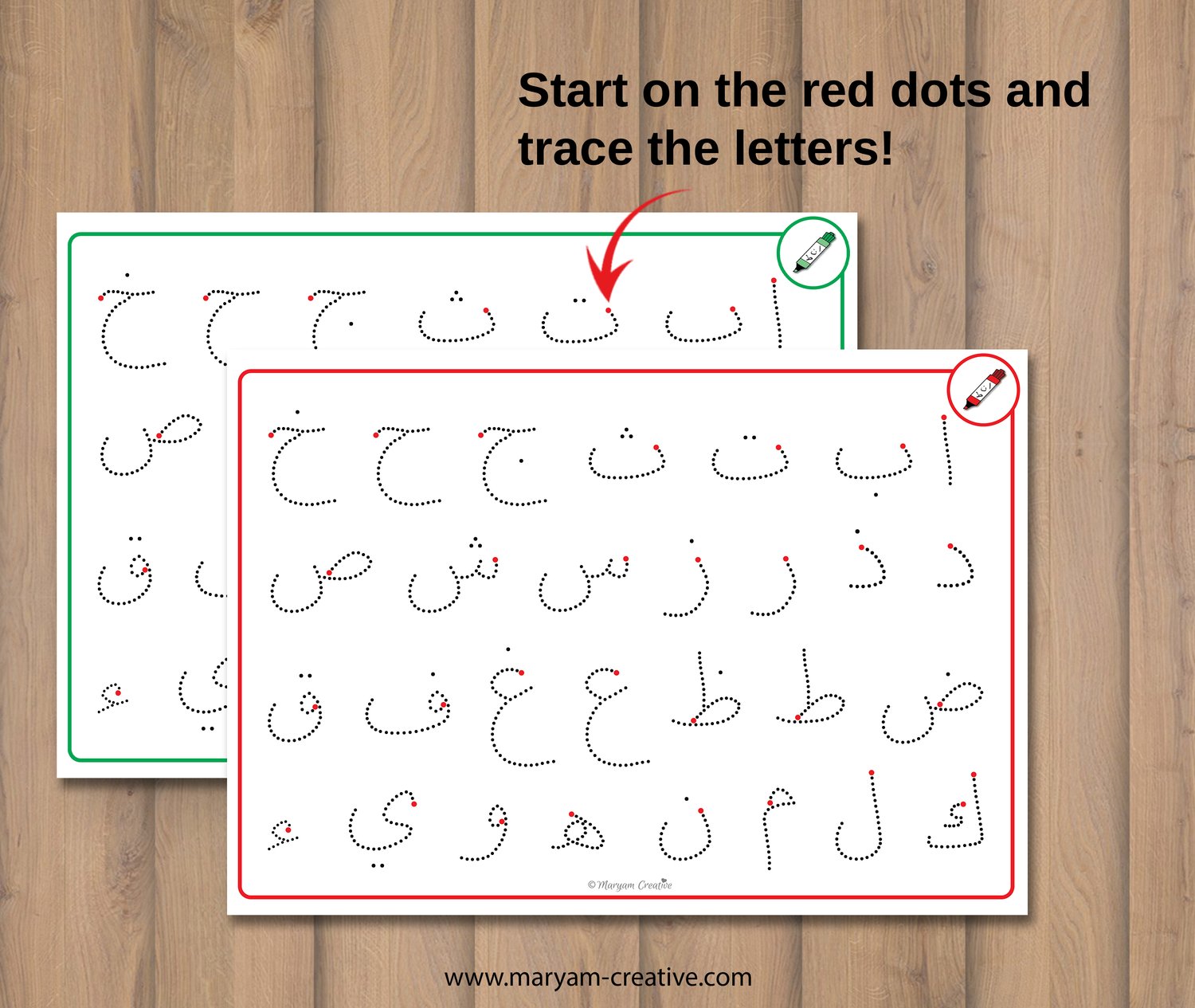 Arabic alphabet tracing mats, الحروف العربية - Instant Download