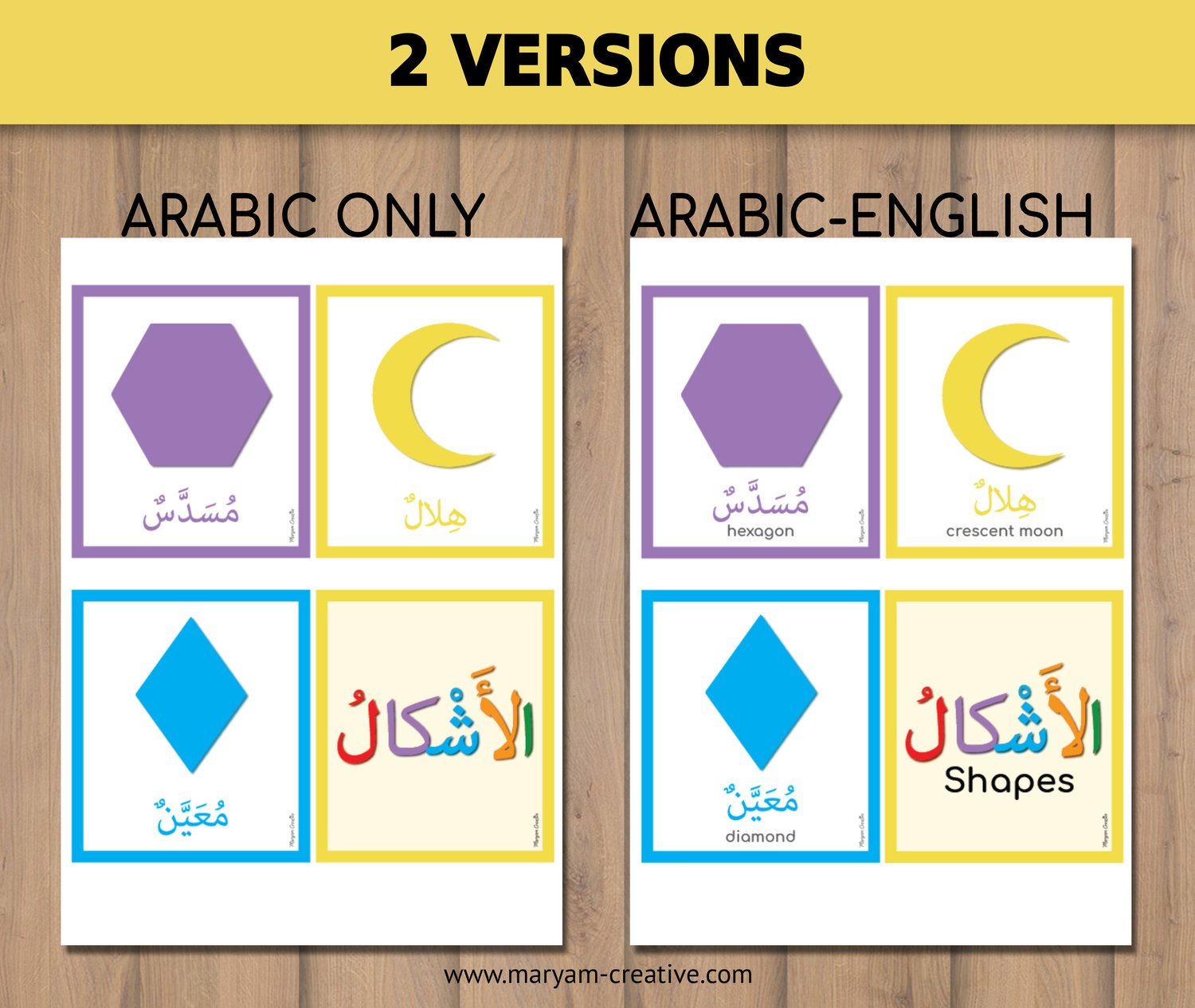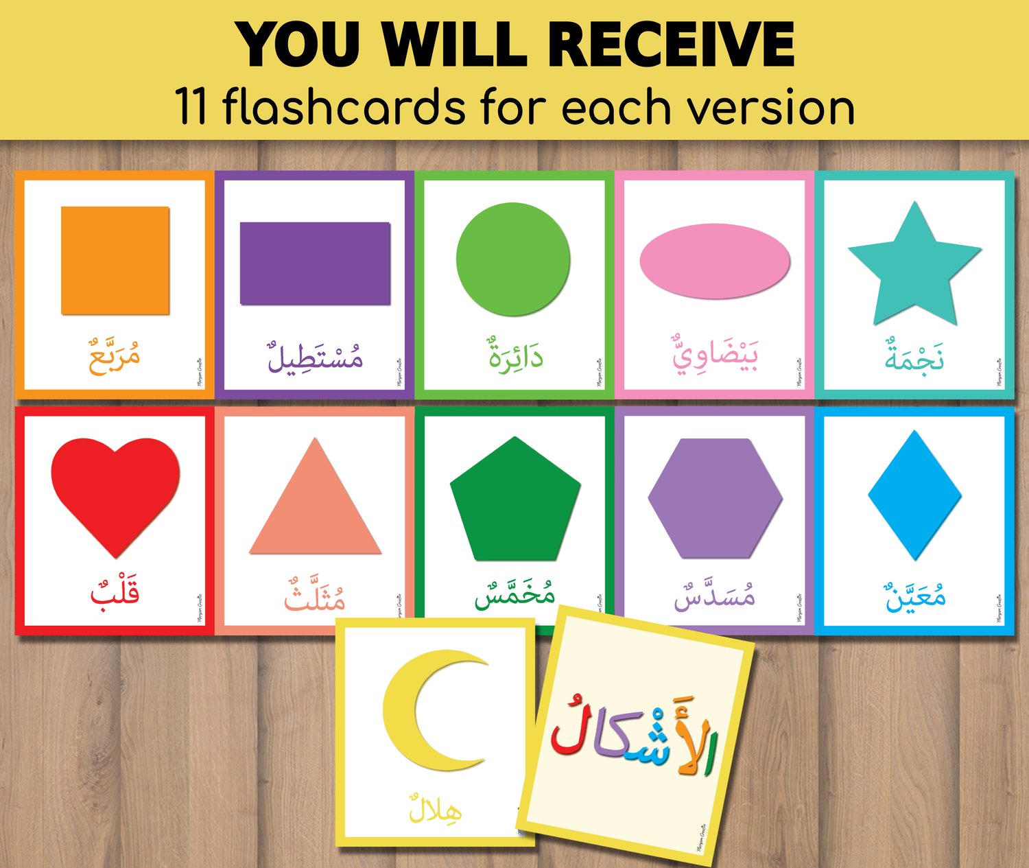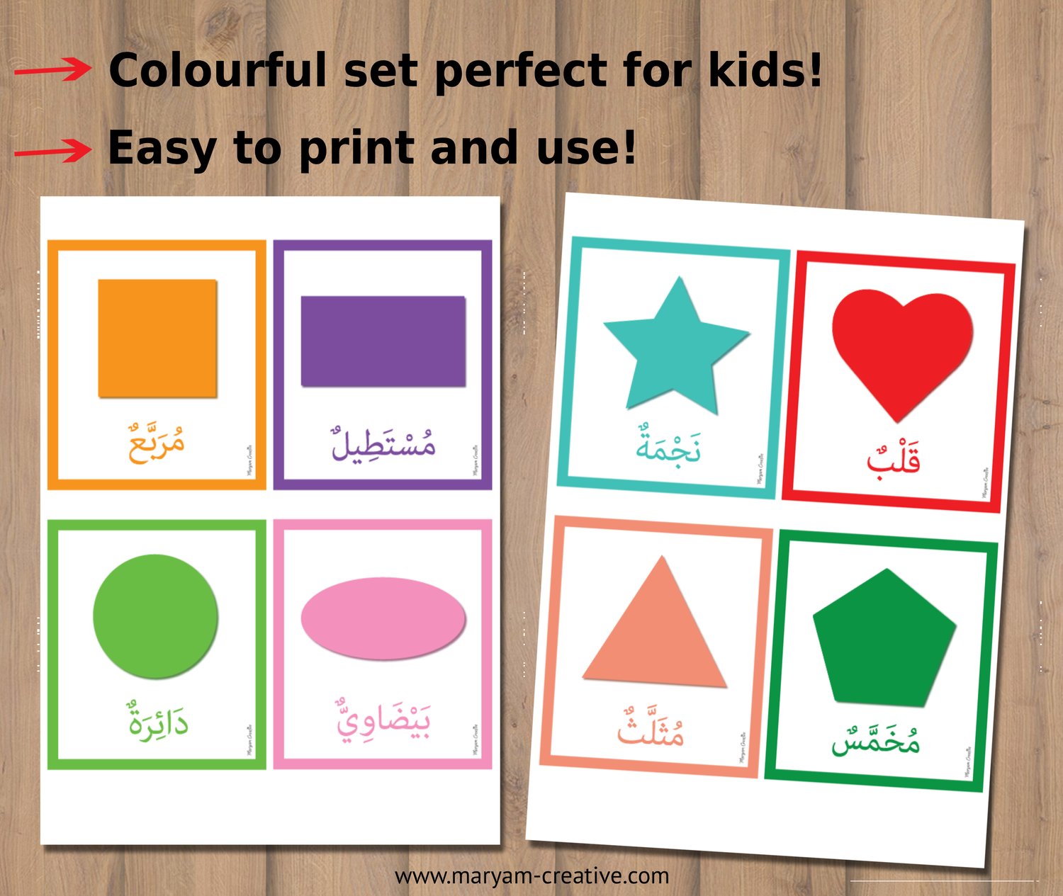 Arabic, Arabic-English Shapes Flashcards colourful set – Instant Download