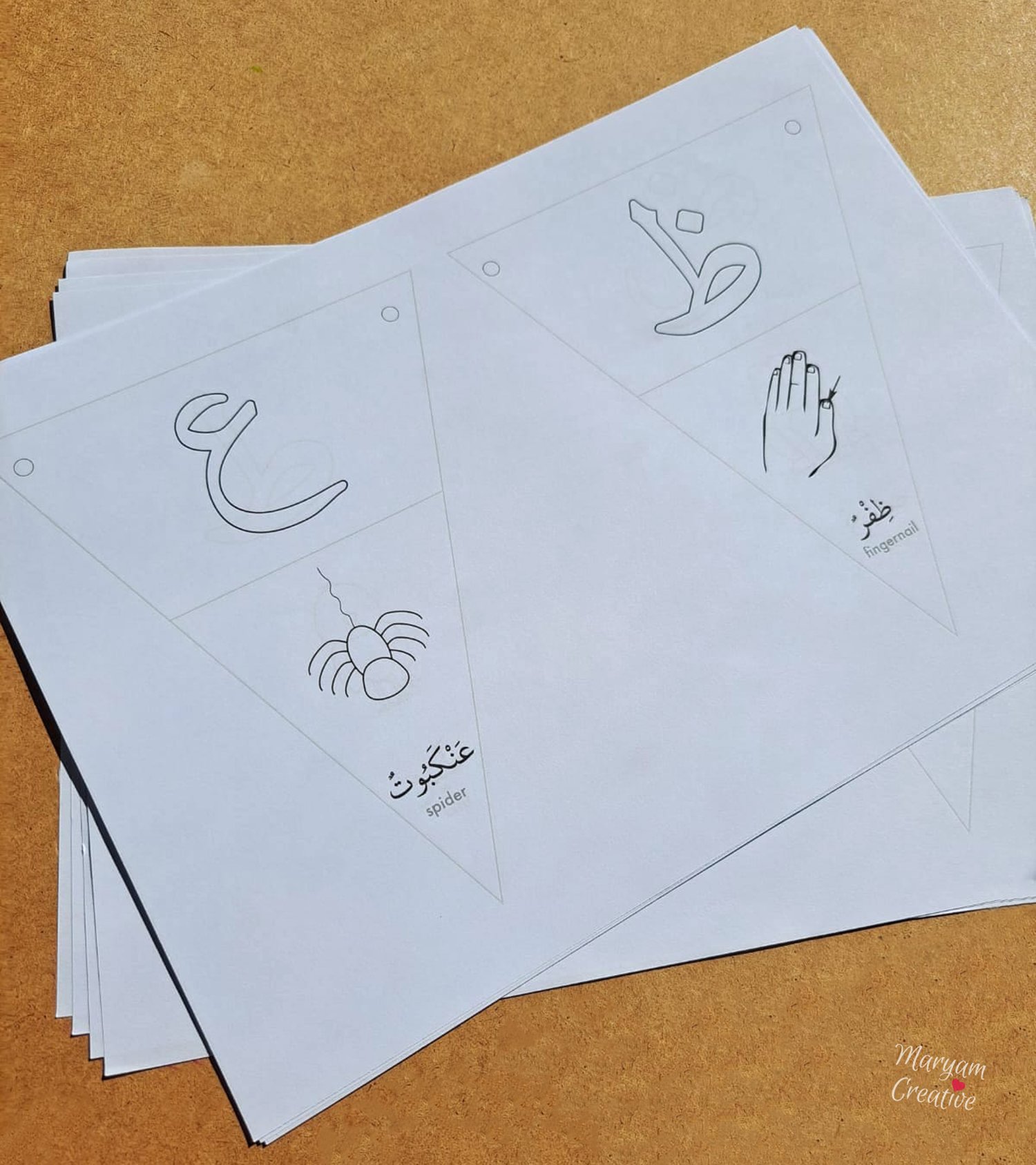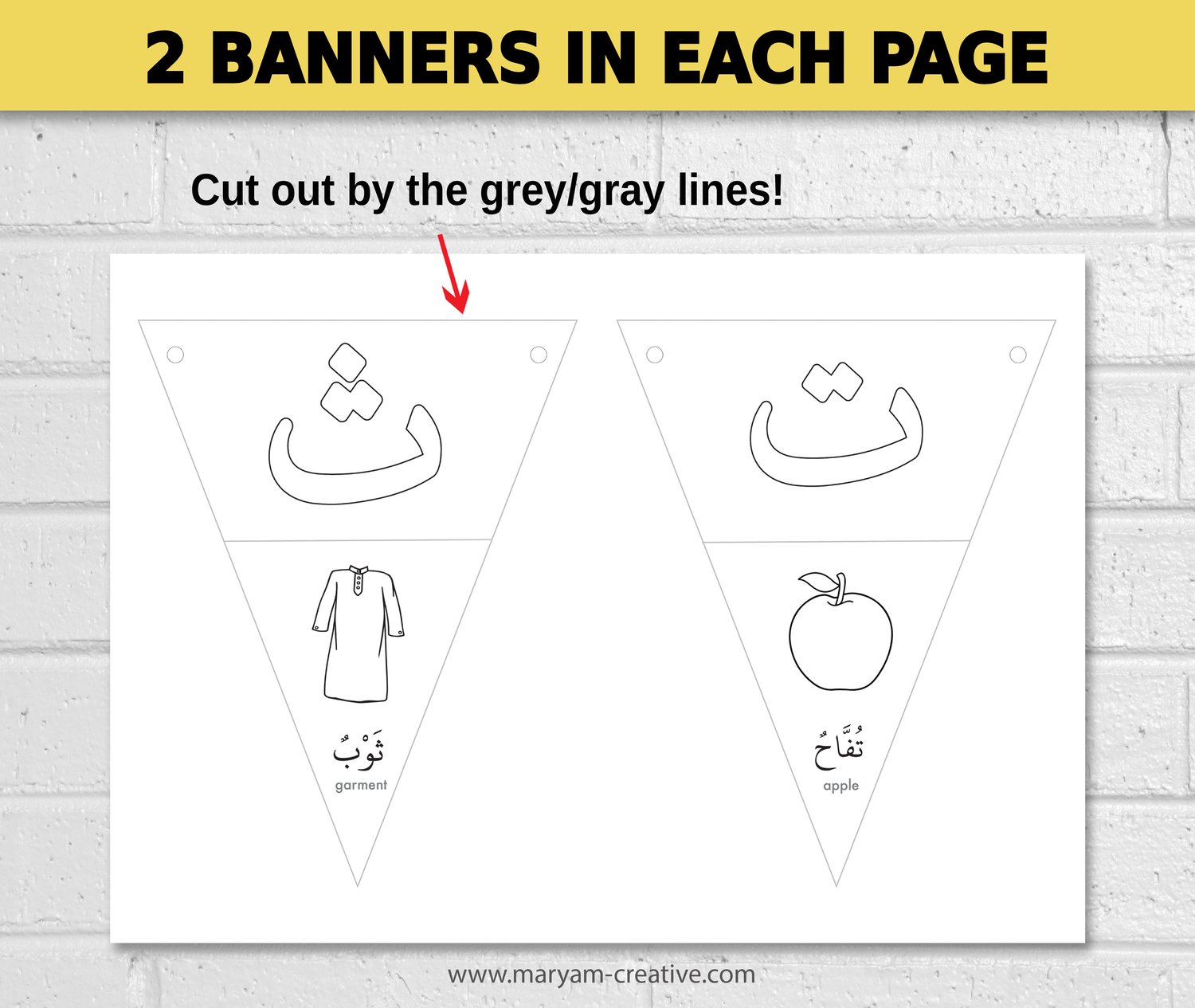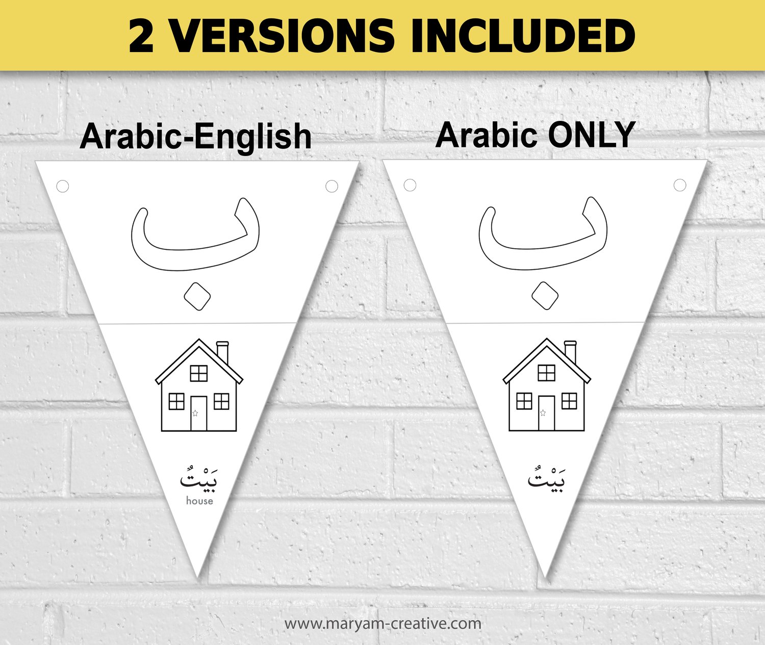Arabic-English Alphabet Colouring Banners, الحروف العربية – Instant Download