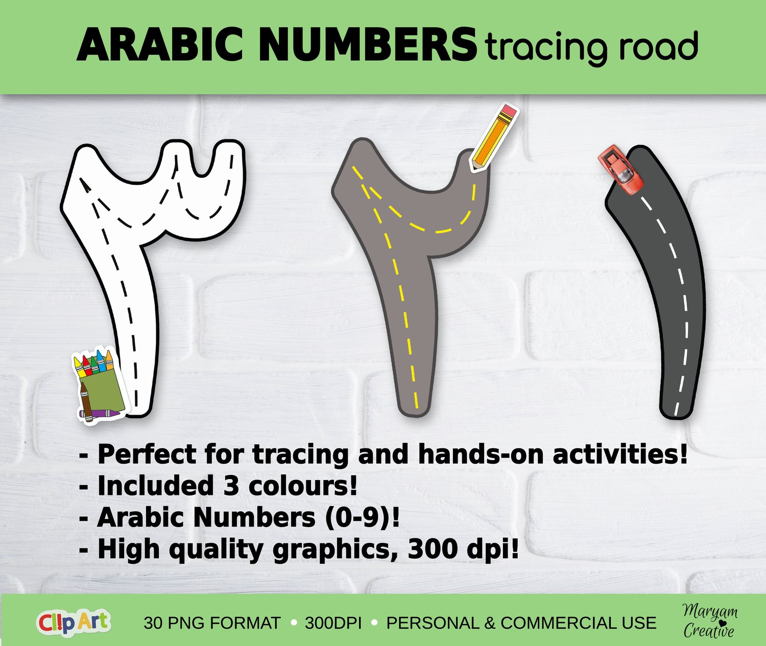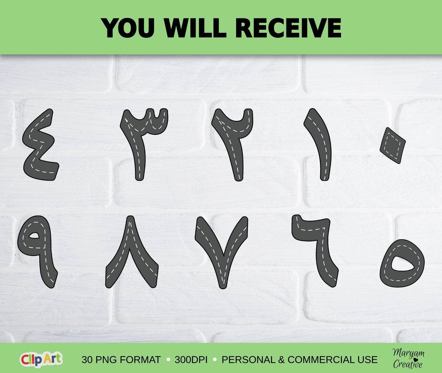 Arabic numbers Road clipart, 30 graphics ,PNG format, الارقام العربية - (Personal & Commercial Use)