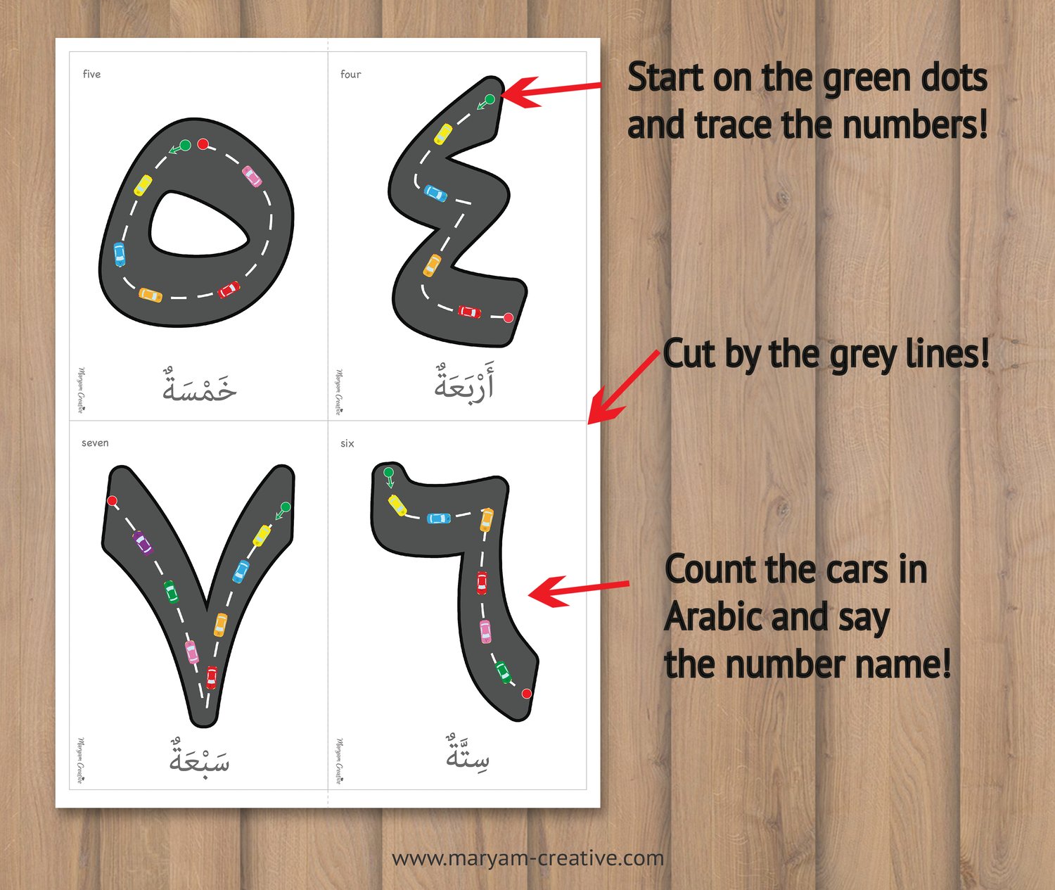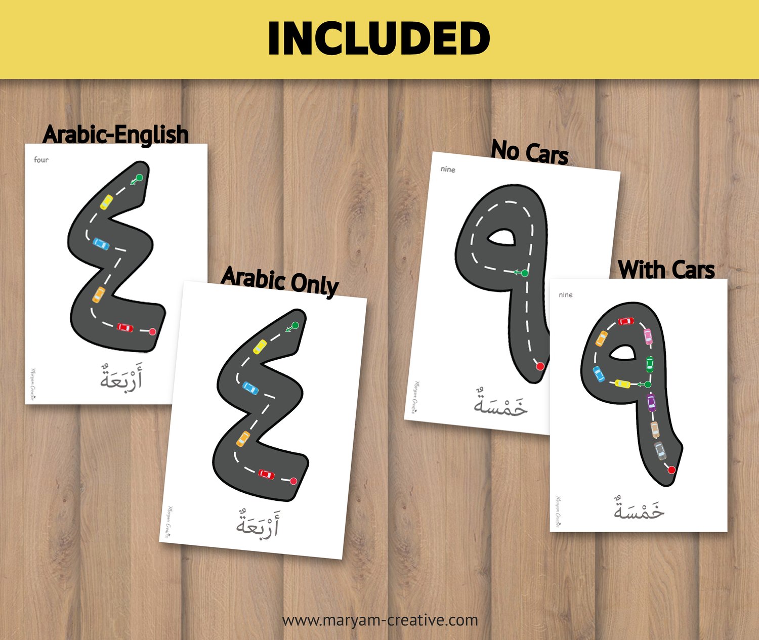 Arabic Numbers Road flashcards 0-10, الأرقام العربية - Instant Download