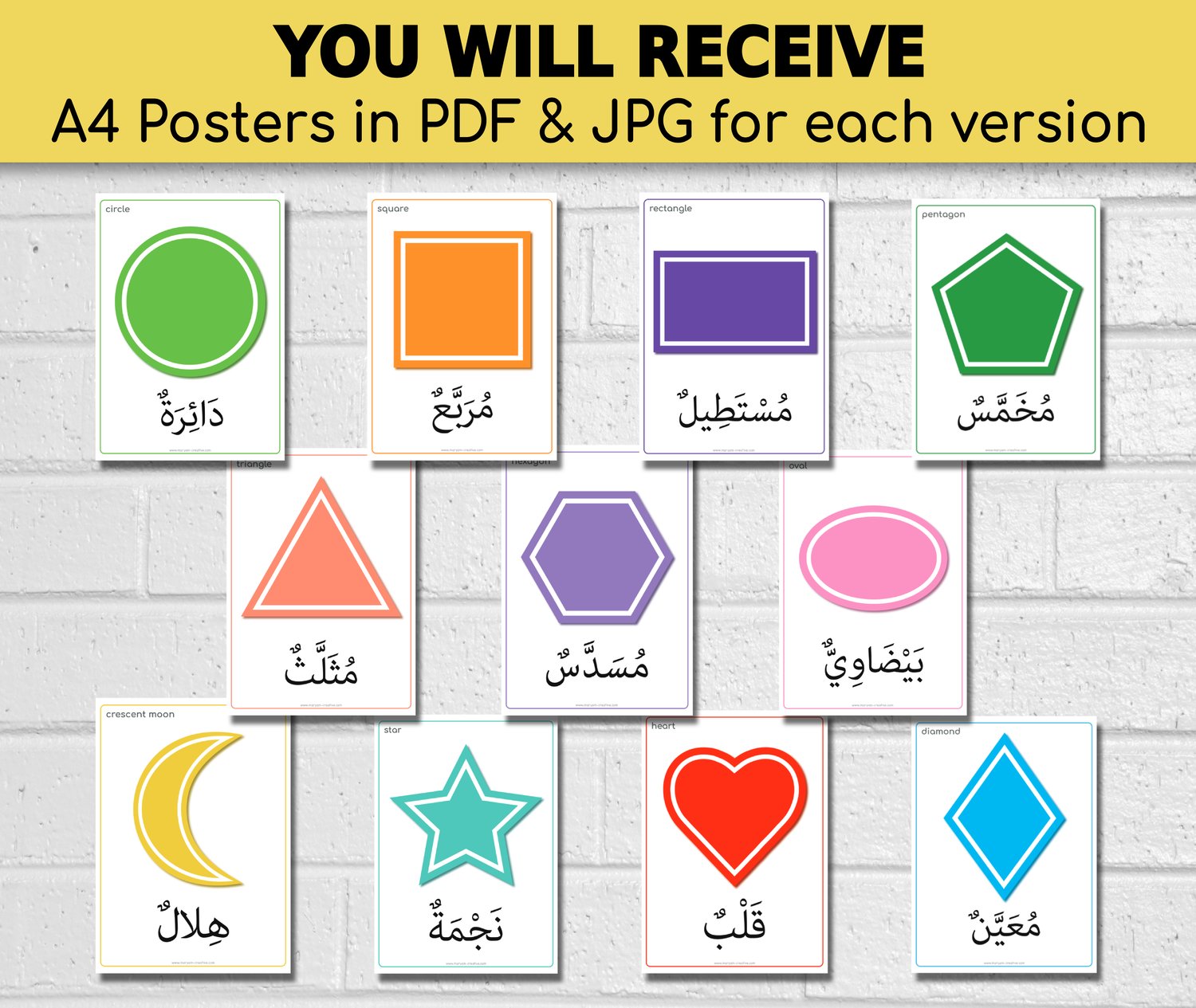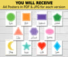 Arabic Shapes A4 Posters, charts, Arabic-English - Instant Download