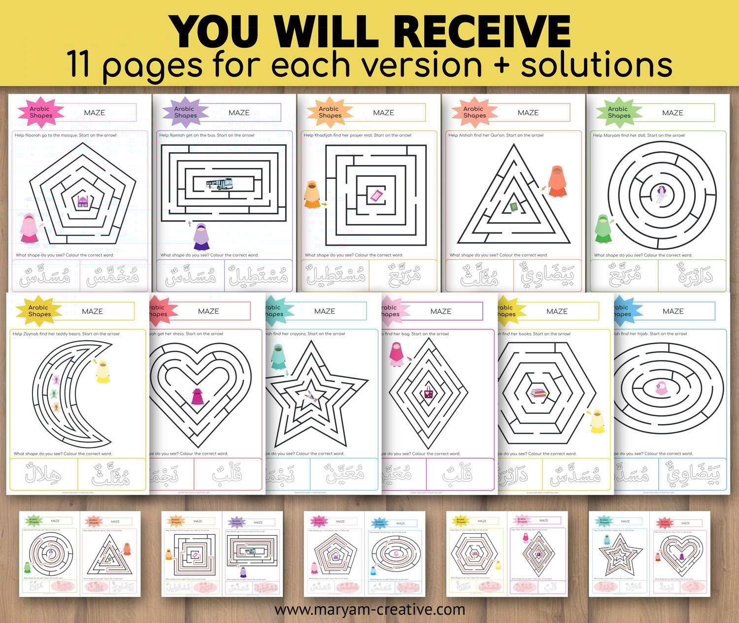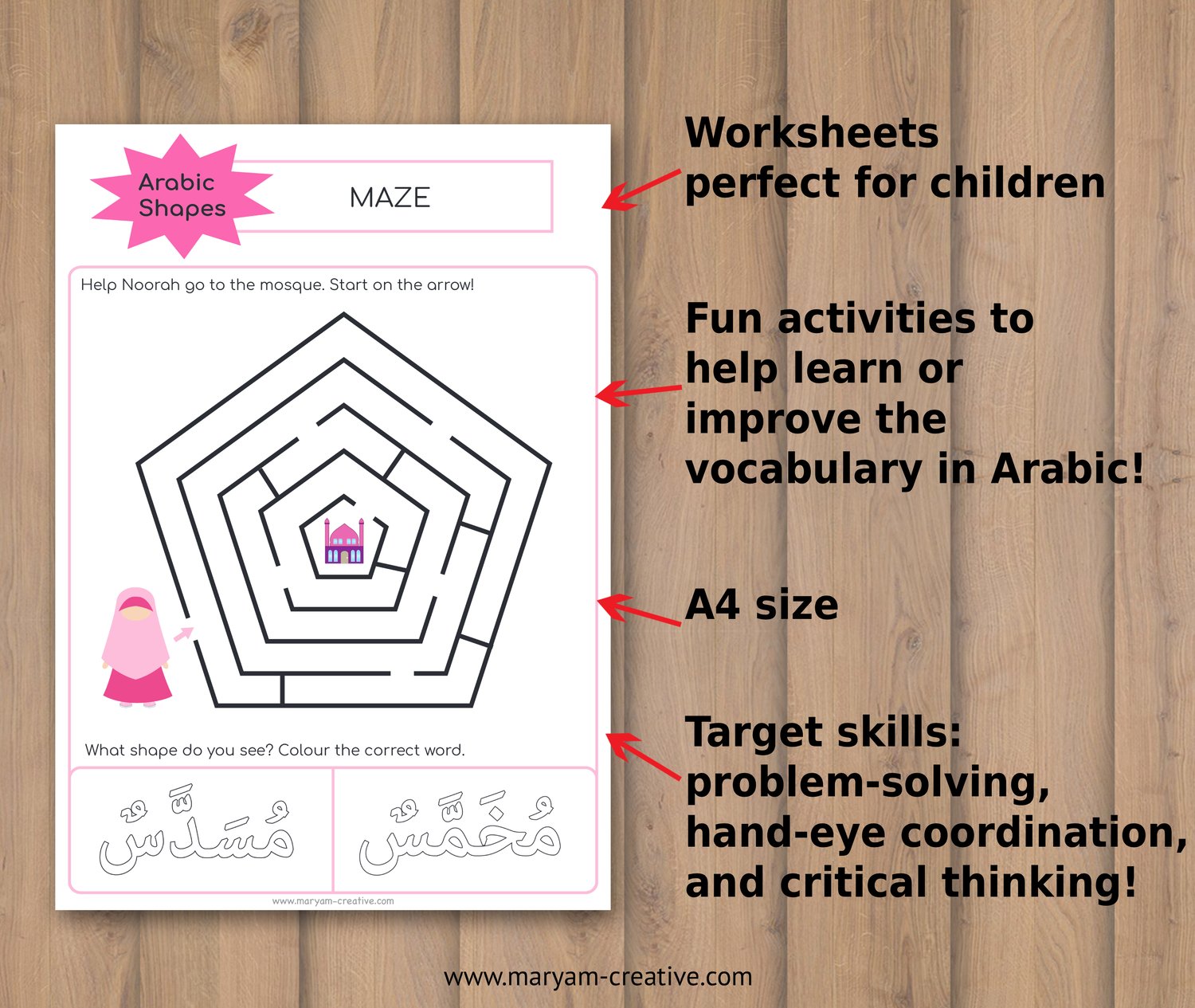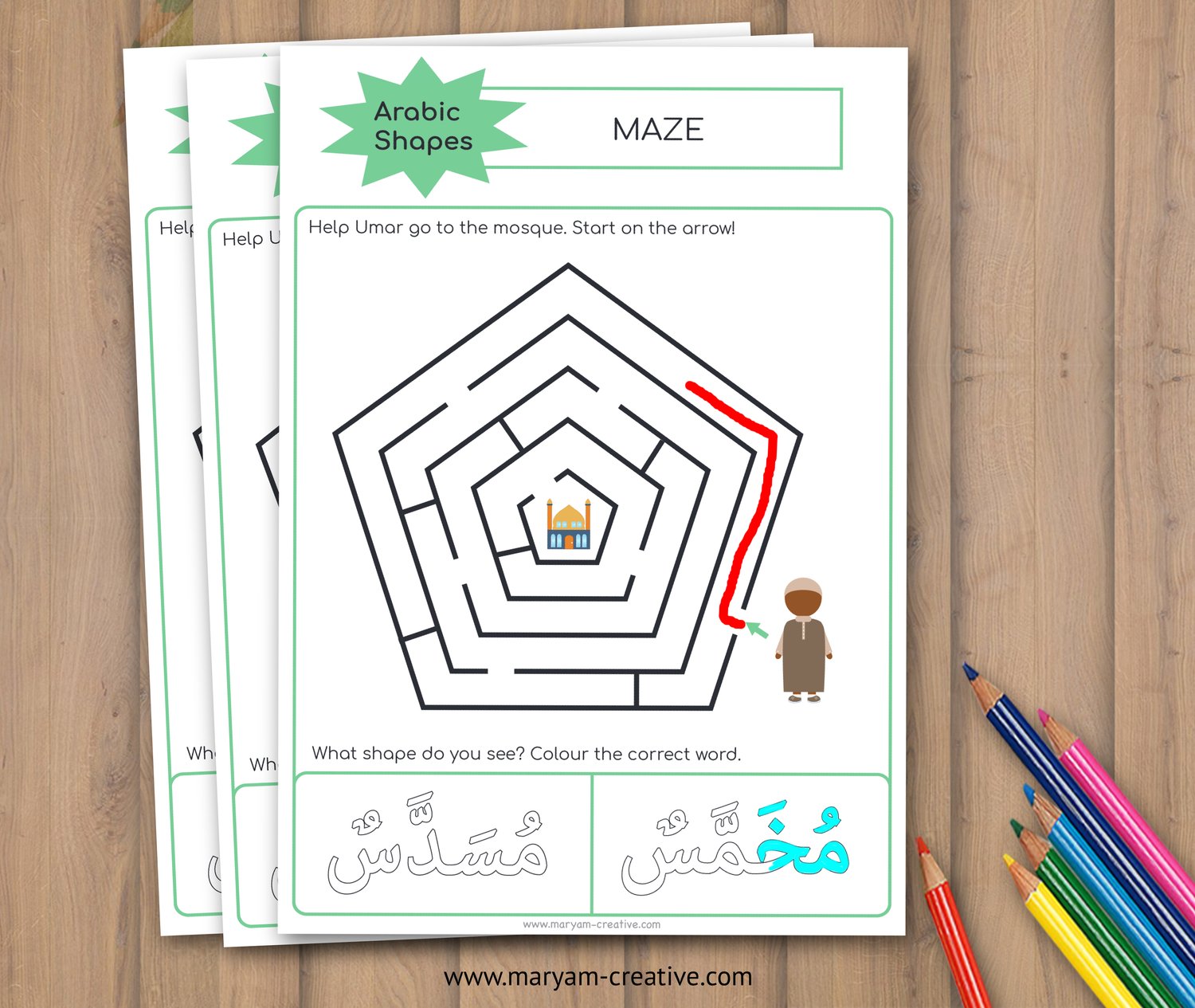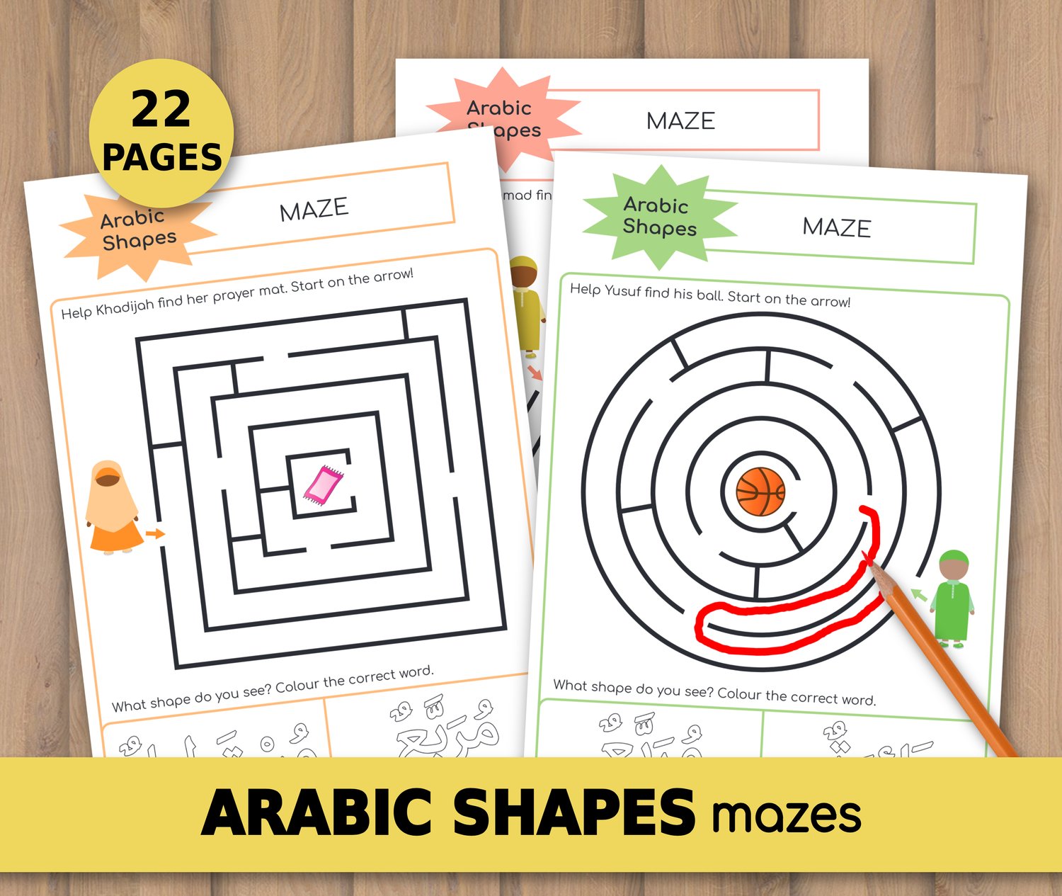 Arabic Shapes Maze, الأشكال العربية - Instant Download