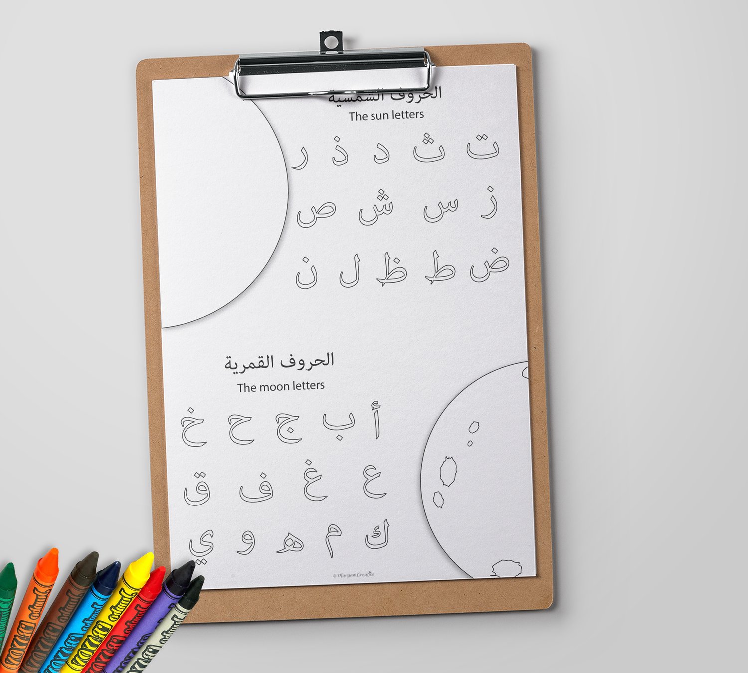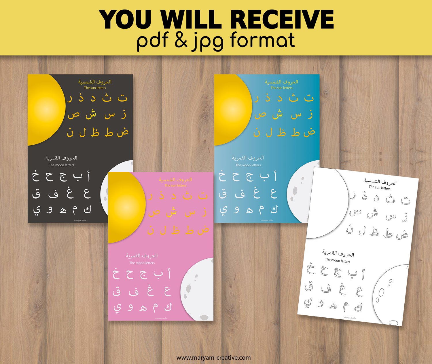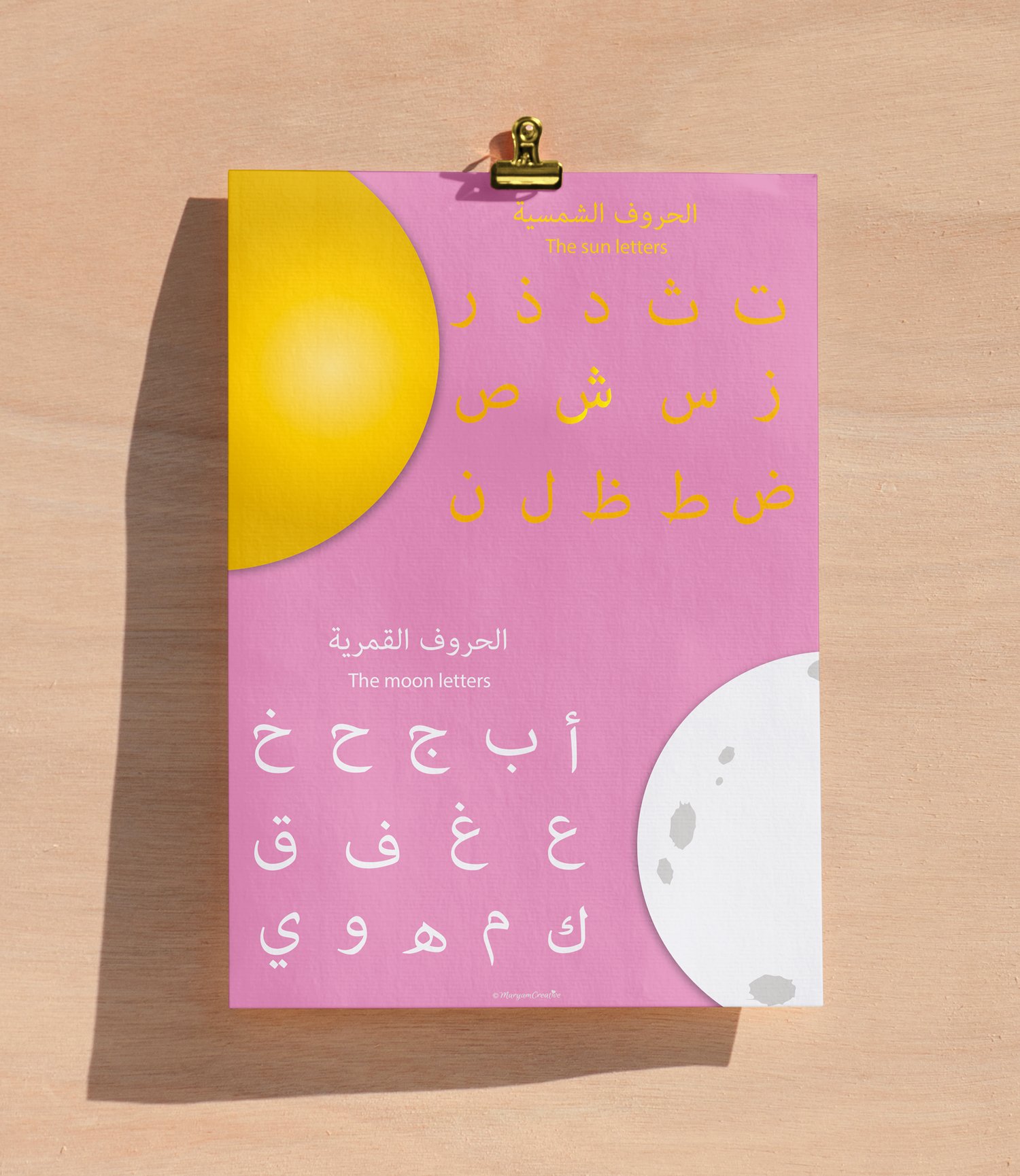 Arabic Sun and moon letters A4 posters, الحروف العربية – Instant Download