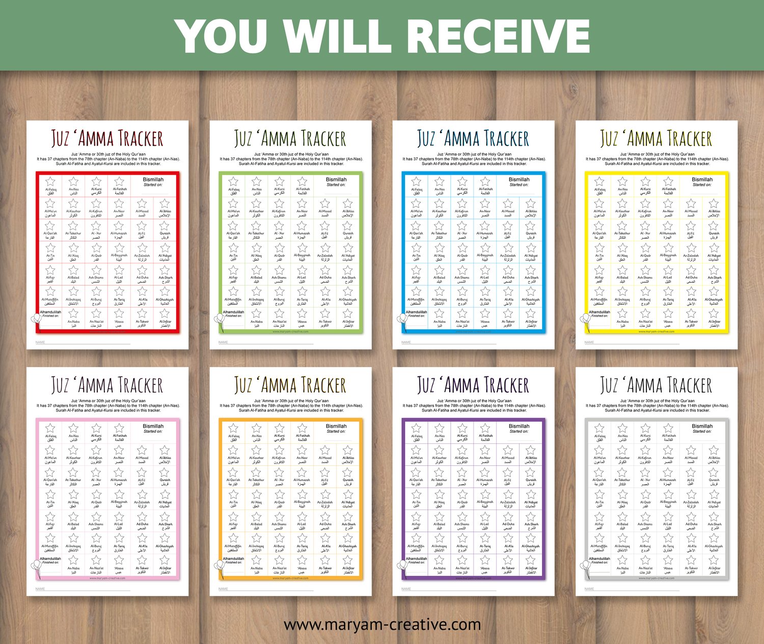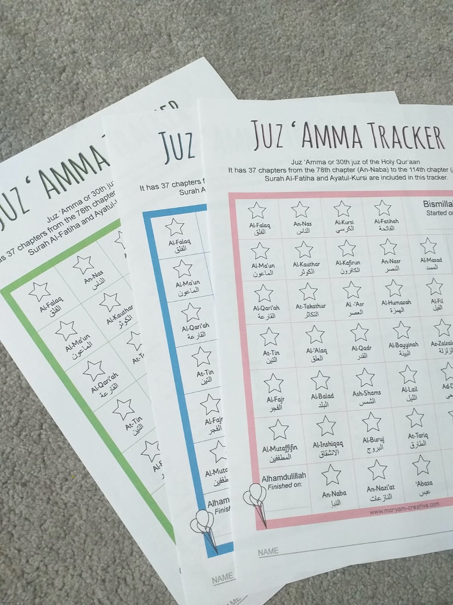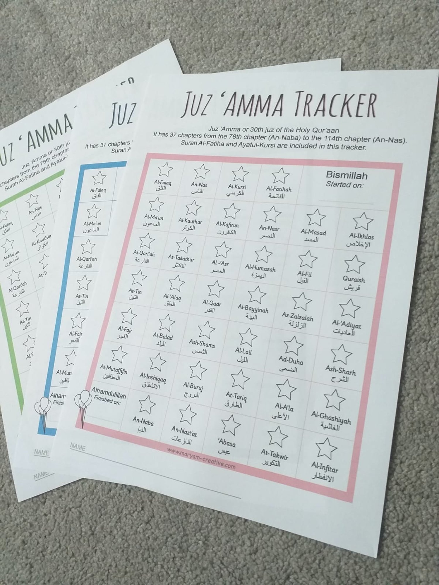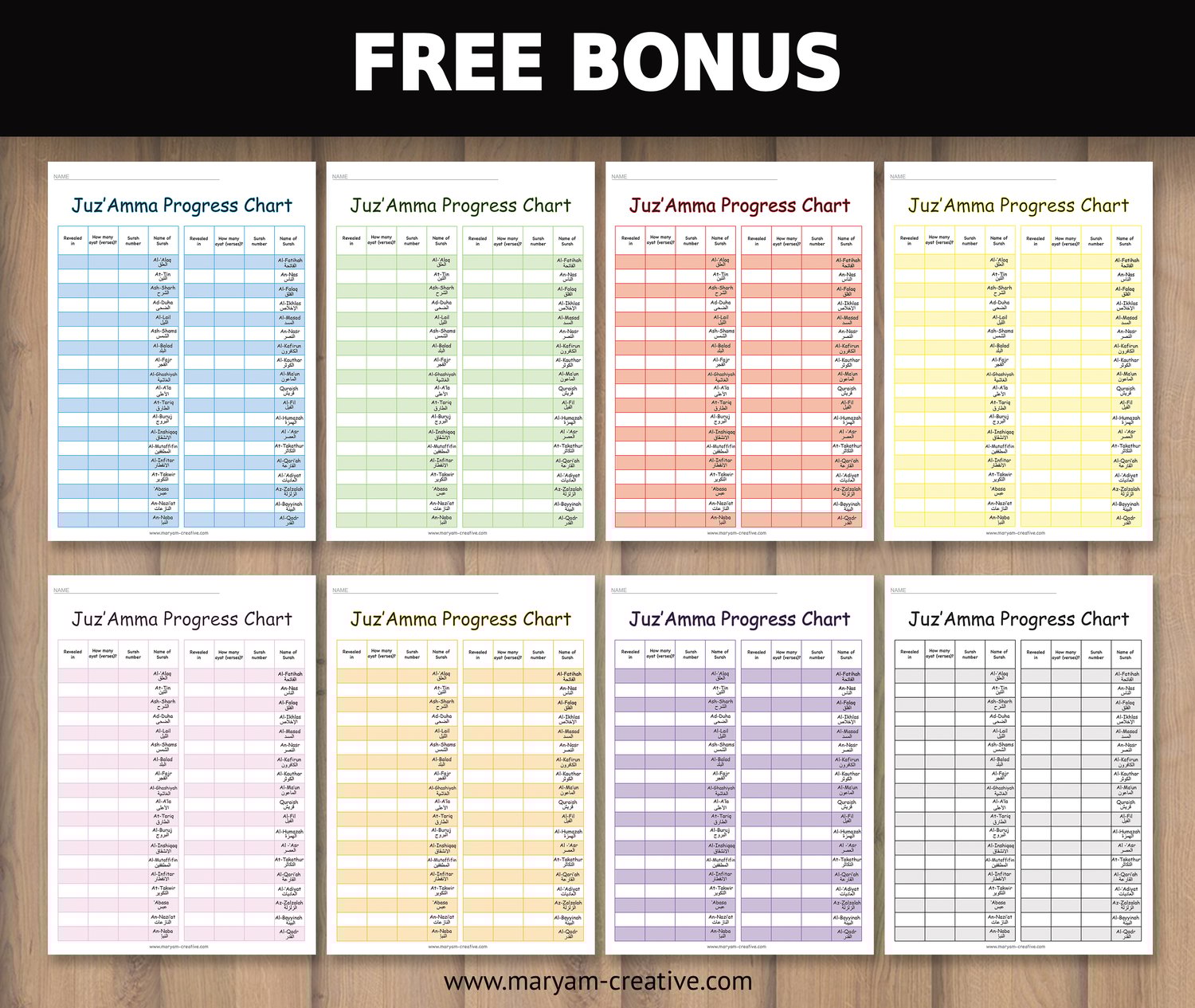 - FREE BONUS: progress chart for the Juz'Amma