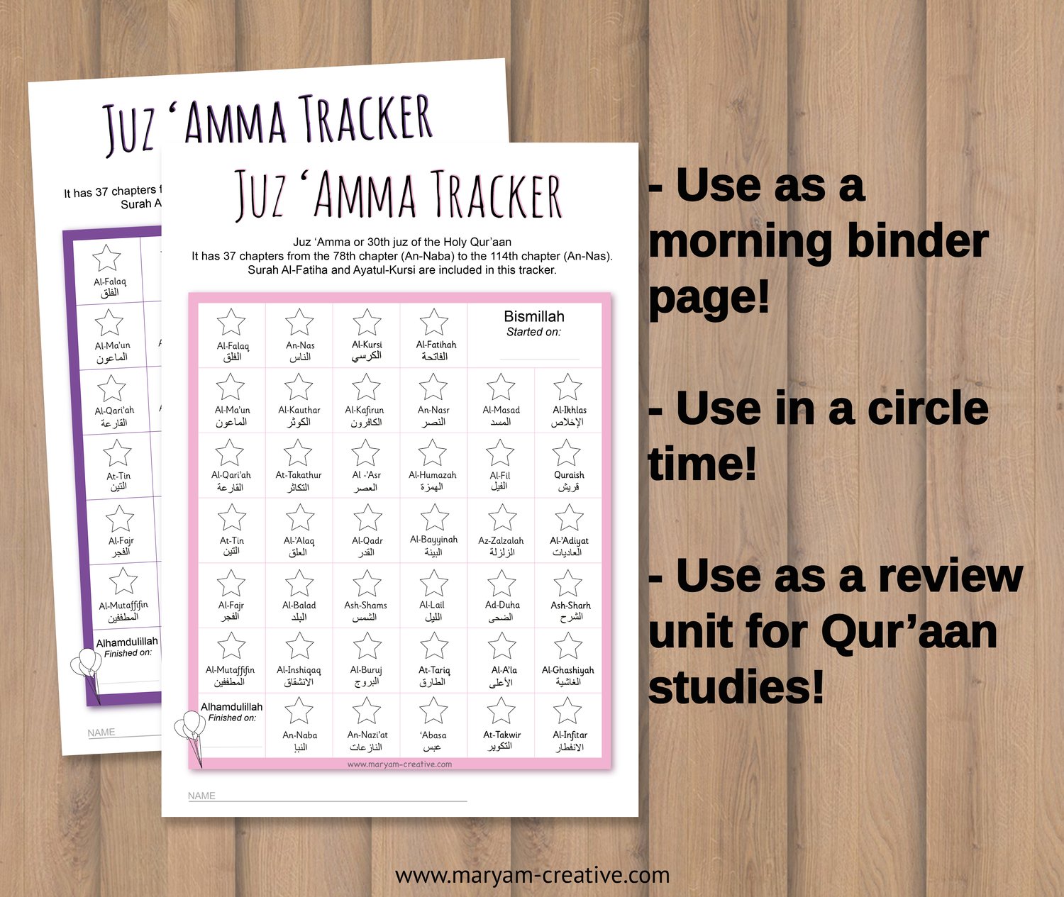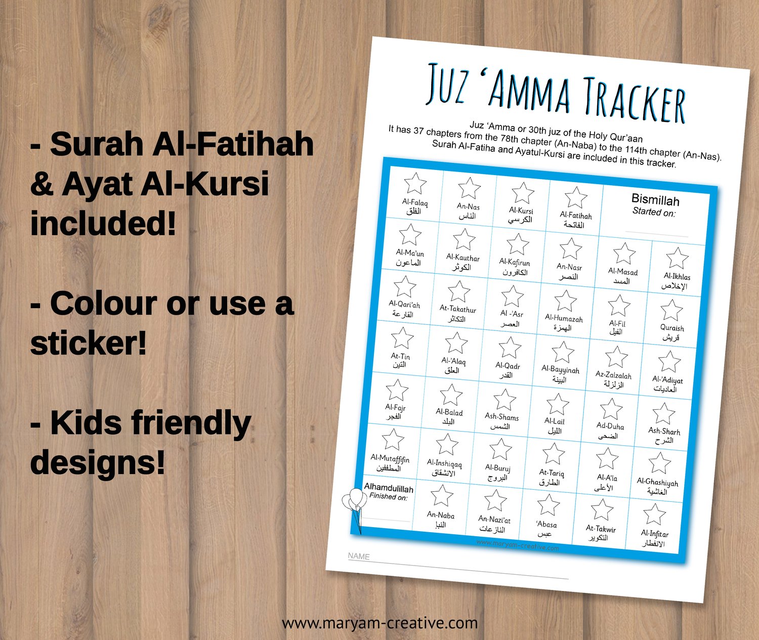 Juz' Amma Tracker for Kids – Instant Download