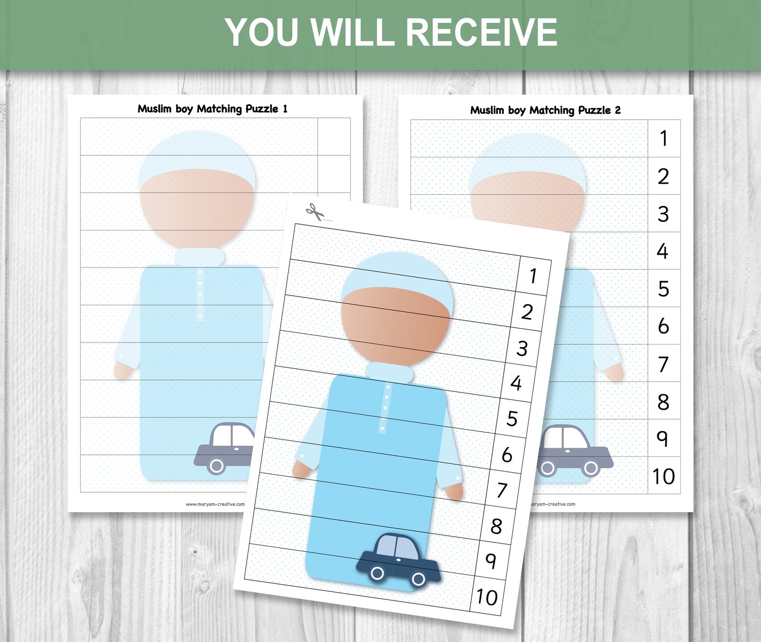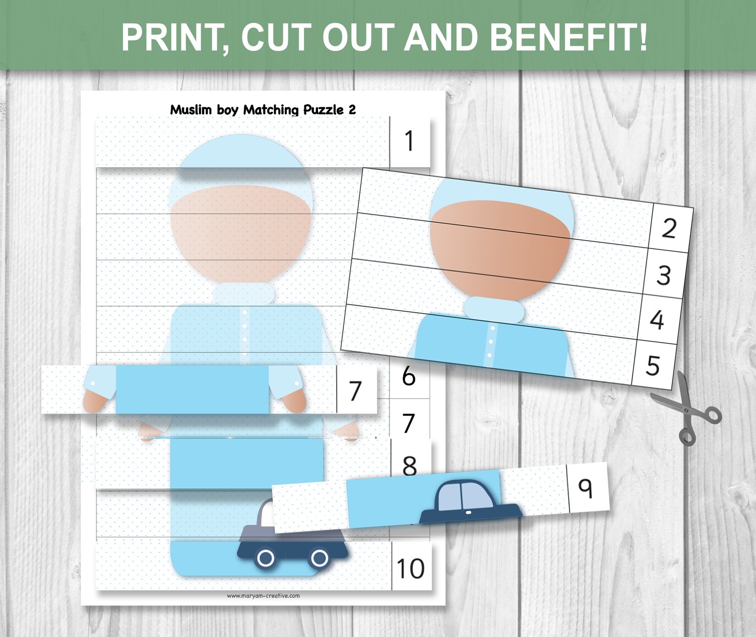 Muslim Boy Number puzzle - Instant Download